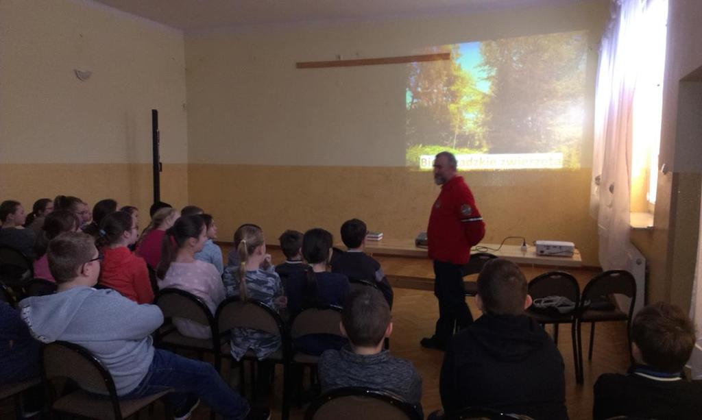 14 grudnia udaliśmy się do Domu Strażaka w Mirocinie na spotkanie z przewodnikiem Stanisławem Orłowskim. Pan podzielił się z nami wiedzą o zwierzętach żyjących w Bieszczadzkim Parku Narodowym. Opowiadał o groźnych drapieżnikach jak wilki, niedźwiedzie, rysie oraz stworzeniach bardziej przyjaznych jak sowy, jaszczurki i żaby. Spotkanie uprzyjemniły piękne fotografie oraz anegdoty o śmiesznych sytuacjach i bliskich spotkaniach z dzikimi zwierzętami.