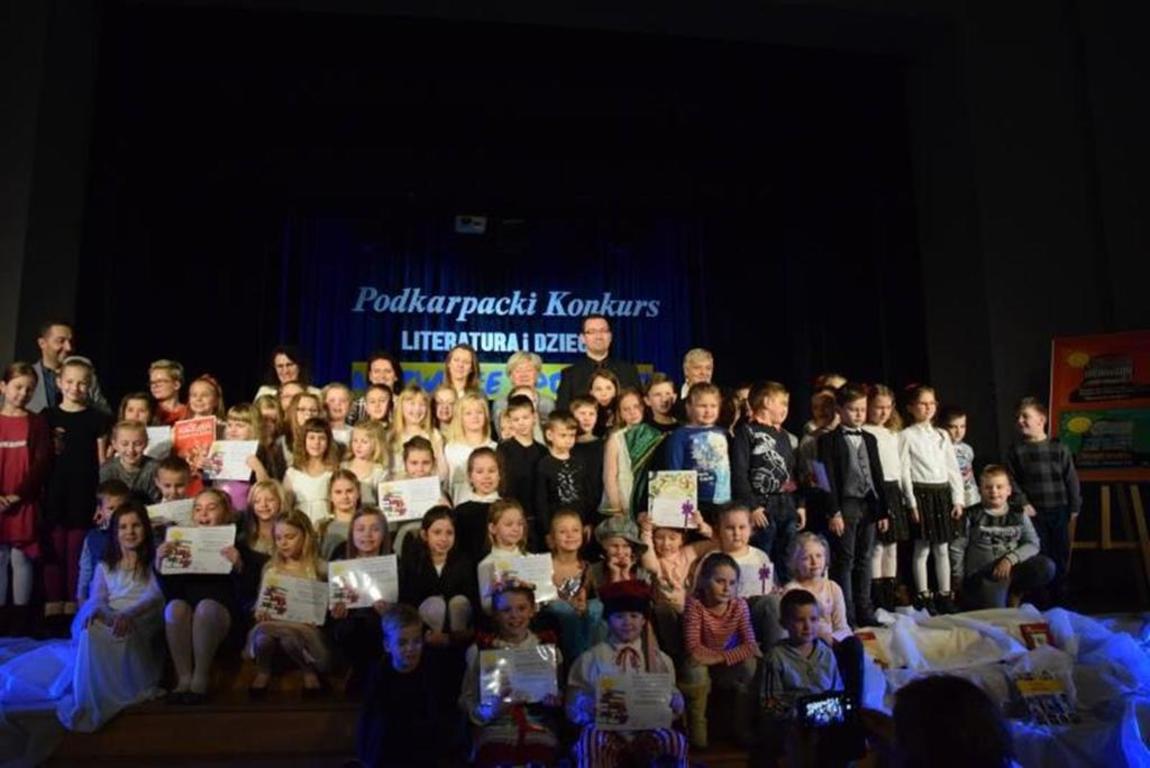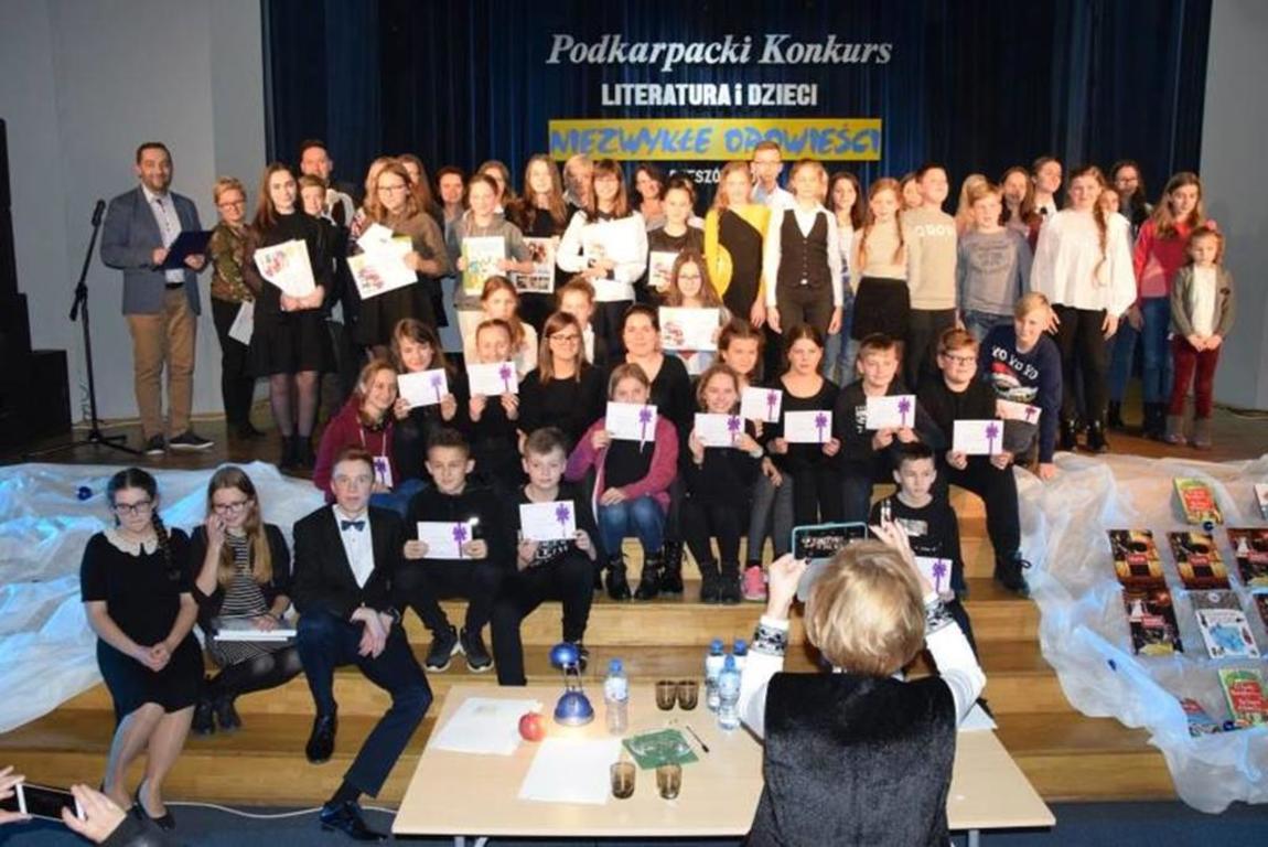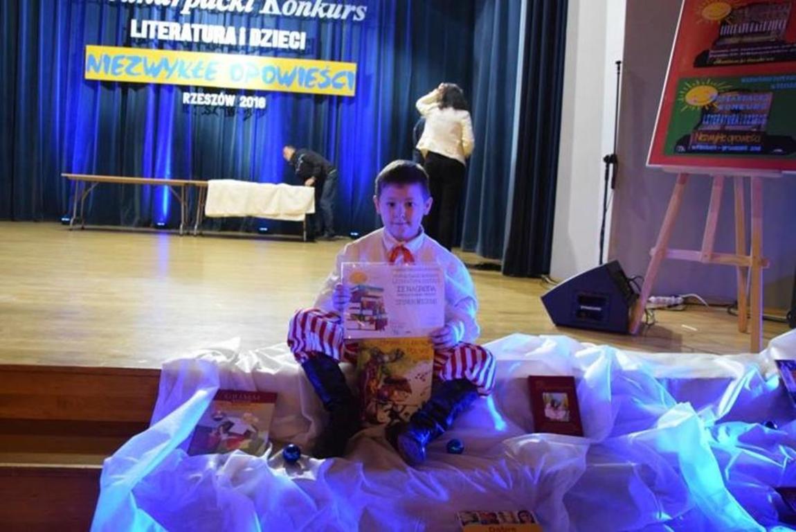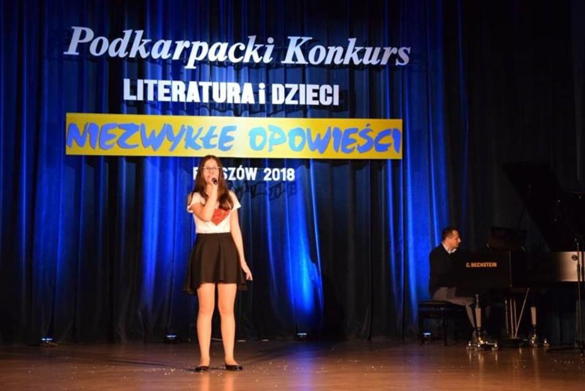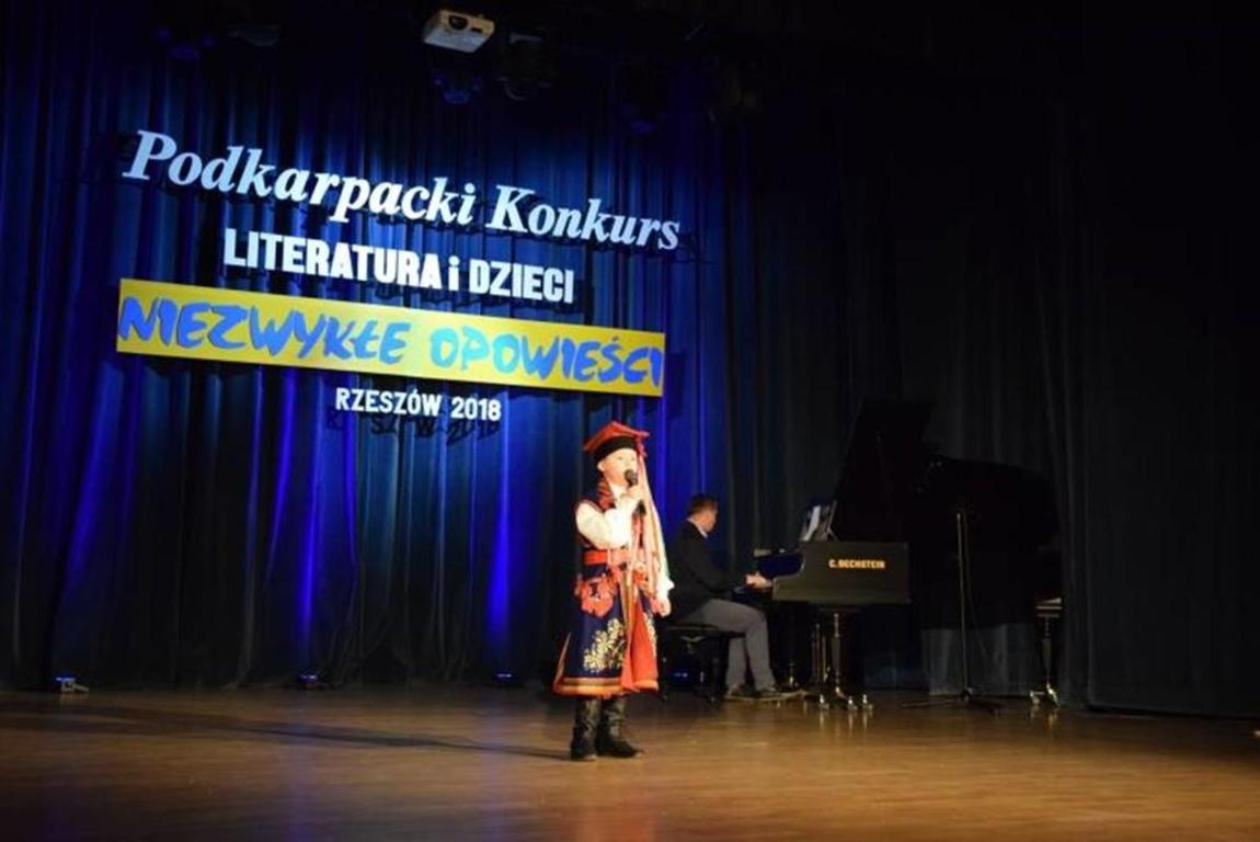 Miło jest nam poinformować, iż w tegorocznym finale Podkarpackiego Konkursu Literatura i Dzieci „Niezwykłe opowieści”, którego organizatorem jest Wojewódzki Dom Kultury w Rzeszowie, główne nagrody w kategorii piosenka zdobyli uczniowie z naszej szkoły. W pierwszej kategorii wiekowej (0 – II) Szymon Michno wyśpiewał II miejsce, natomiast w trzeciej (VI-VIII) Aleksandra Piątek zdobyła I miejsce. W konkursie wzięło udział kilkaset uczestników. Aby dotrzeć na podium, Ola i Szymek musieli pokonać trzy etapy eliminacji, przekonać do siebie trzy różne składy komisji konkursowej. Jest to wyjątkowe osiągnięcie naszych uczniów w jednym z najtrudniejszych konkursów w województwie. Serdecznie gratulujemy!!!.