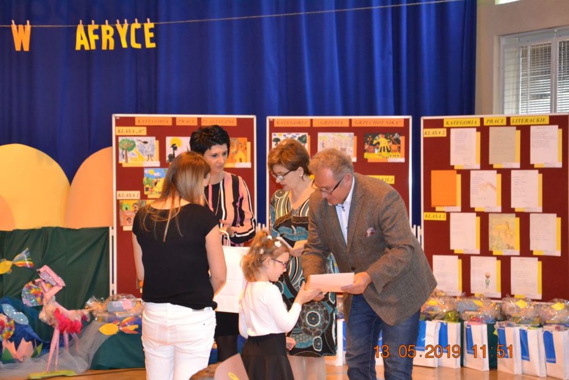 W kategorii klas młodszych (klasy 0 –I) za wykonanie ciekawej i barwnej ilustracji związanej z tematyką konkursu wyróżnienie zdobyła uczennica zerówki Julia Kołcz, zaś w kategorii klas starszych (klasy II – III)za napisanie „trzeszczącego wierszyka” o tematyce afrykańskiej pt. „Dżungla” wyróżnienie otrzymała Dominika Hołub z klasy II.