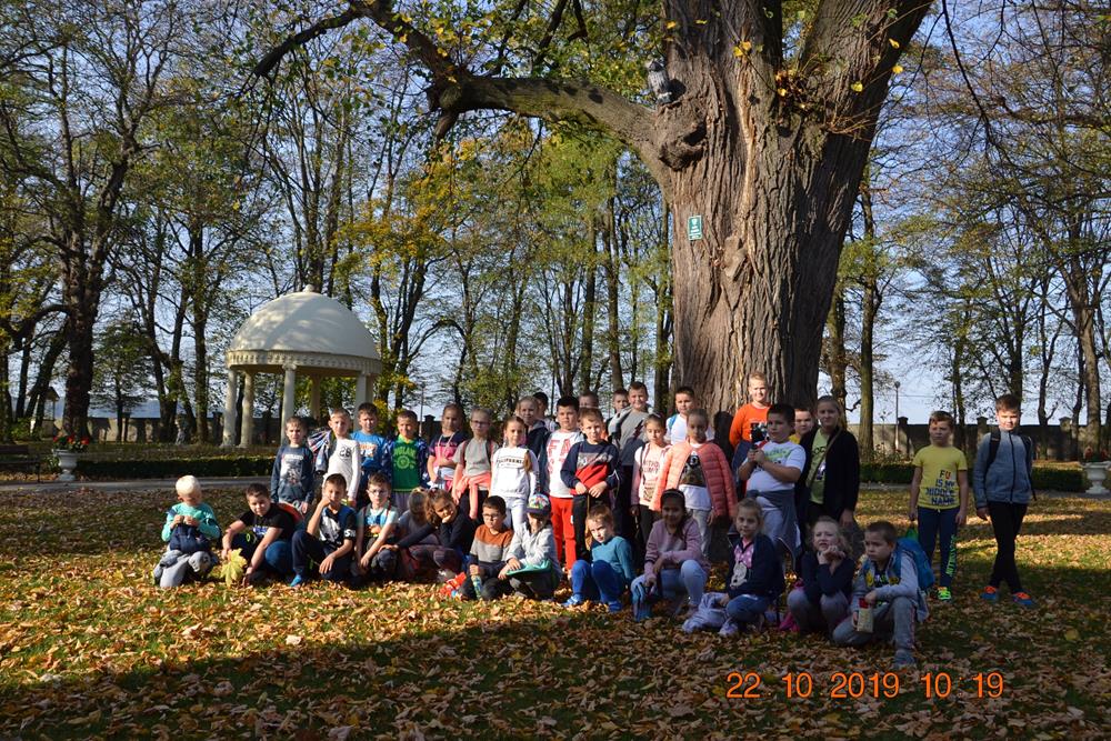 W dniu 22 października uczniowie klas I-III korzystając z pięknej, jesiennej pogody wybrali się na spacer do parku w Ożańsku. Park ten jest częścią kompleksu pod nazwą Zespół Pałacowo – Parkowy w Ożańsku. W środku parku stoi piękny pałac, a prowadzą do niego alejki przy których rosną okazałe, bardzo stare kasztanowce, lipy i inne drzewa. W parku znajduje się również staw, którego atrakcją jest para „niezwykle eleganckich” łabędzi niemych. I choć nie udało nam się z powodu późnej pory roku uzbierać kasztanów, to przynieśliśmy do szkoły ogromne bukiety kolorowych, jesiennych liści.