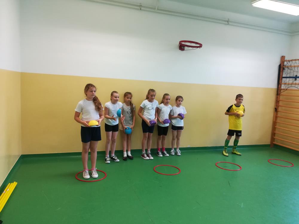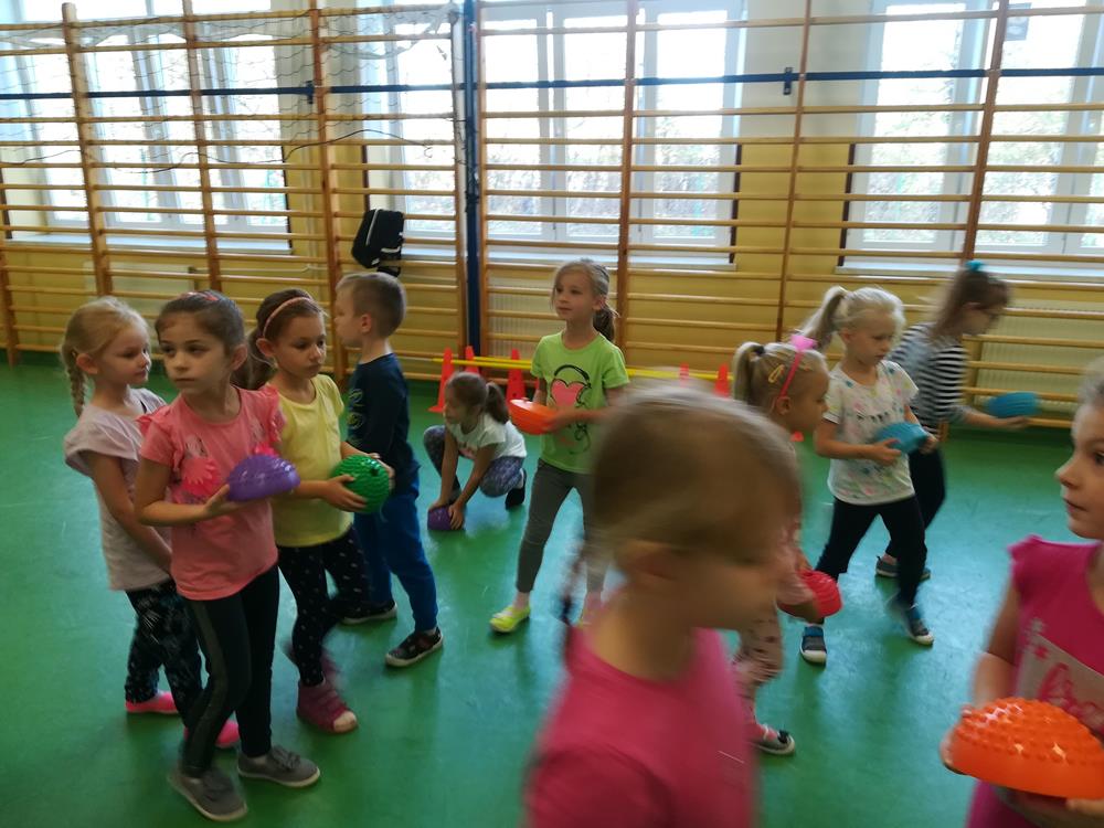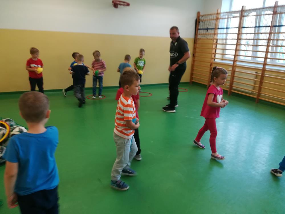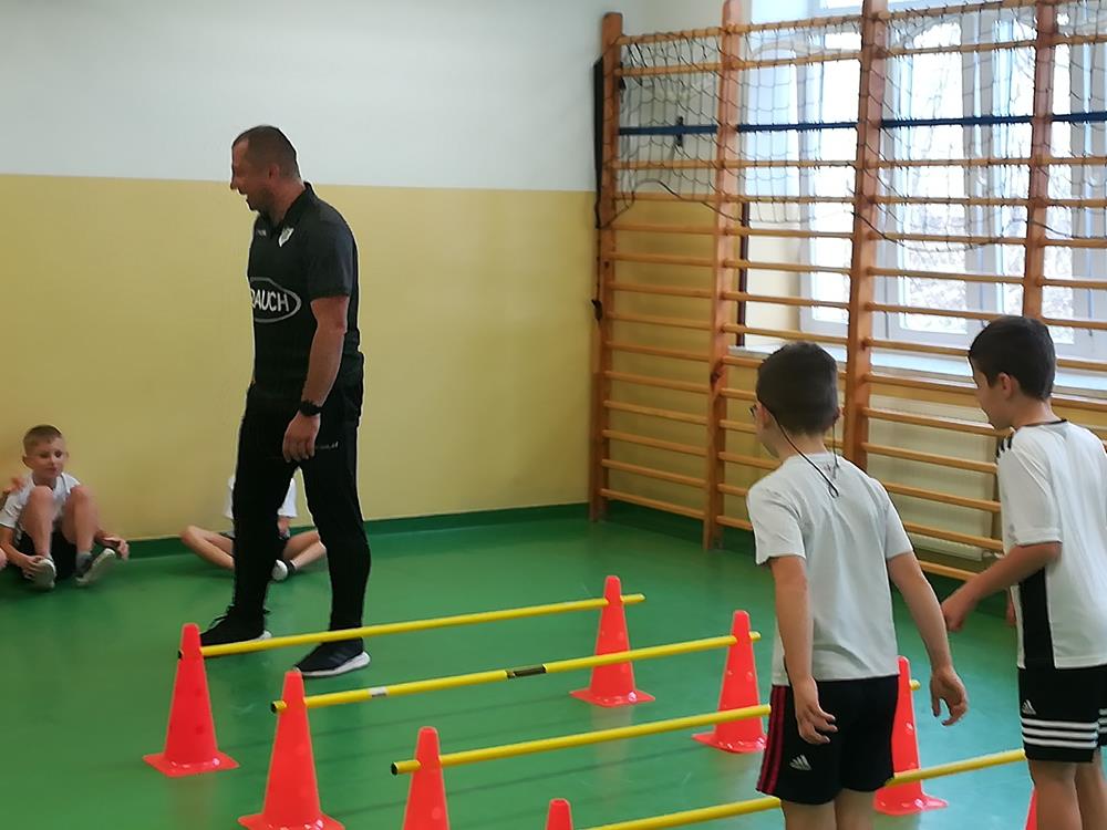 23 października gościliśmy w naszej szkole pana Andrzeja Sowińskiego trenera Akademii Piłkarskiej „Perfekt Przeworsk”, który przygotował dla uczniów sportową atrakcję. Dzieci z przedszkola oraz uczniowie z klas I – III brali udział w sportowych zajęciach grupowych przygotowanych w bardzo profesjonalny i ciekawy sposób. Każdy uczestnik mógł sprawdzić swoją wytrzymałość, umiejętność współpracy oraz przypomnieć sobie zasady rywalizacji fair play. Wszyscy uczniowie świetnie bawili się podczas zajęć, a ponieważ „w zdrowym ciele, zdrowy duch”, udało się prowadzącemu pogodzić przyjemne z pożytecznym.