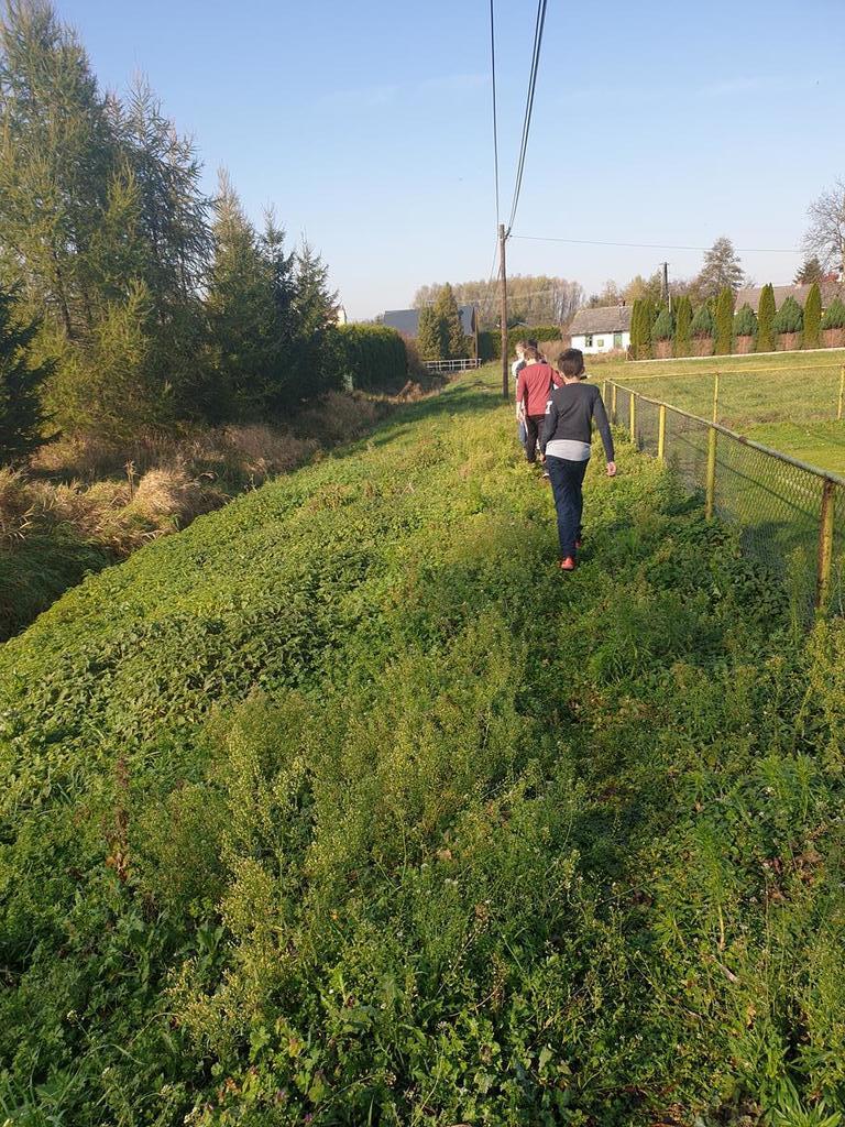 W słoneczny październikowy dzień uczniowie klasy VII wraz z p. Anną Bieniasz – Markowicz i p. Iwoną Zamorską udali się na pieszą wycieczkę brzegami lokalnej rzeki. Była to akcja zorganizowana w ramach III Międzynarodowego Dnia Krajobrazu, który promował wartość wody w krajobrazie. Młodzież wzięła aktywny udział w rozmowie na temat kierunku przypływów i odpływów Potoku, ukształtowania ternu, barwy, przejrzystości, stanu czystości oraz szerokości rzeki. Zmiany klimatu – susze i gwałtowne ulewy – przywołały wspomnienia powodzi, które w historii nawiedzały naszą wioskę. Żywa lekcja geografii dała możliwość usystematyzowania podstawowych pojęć oraz obserwację flory i fauny w dolinie rzeki.