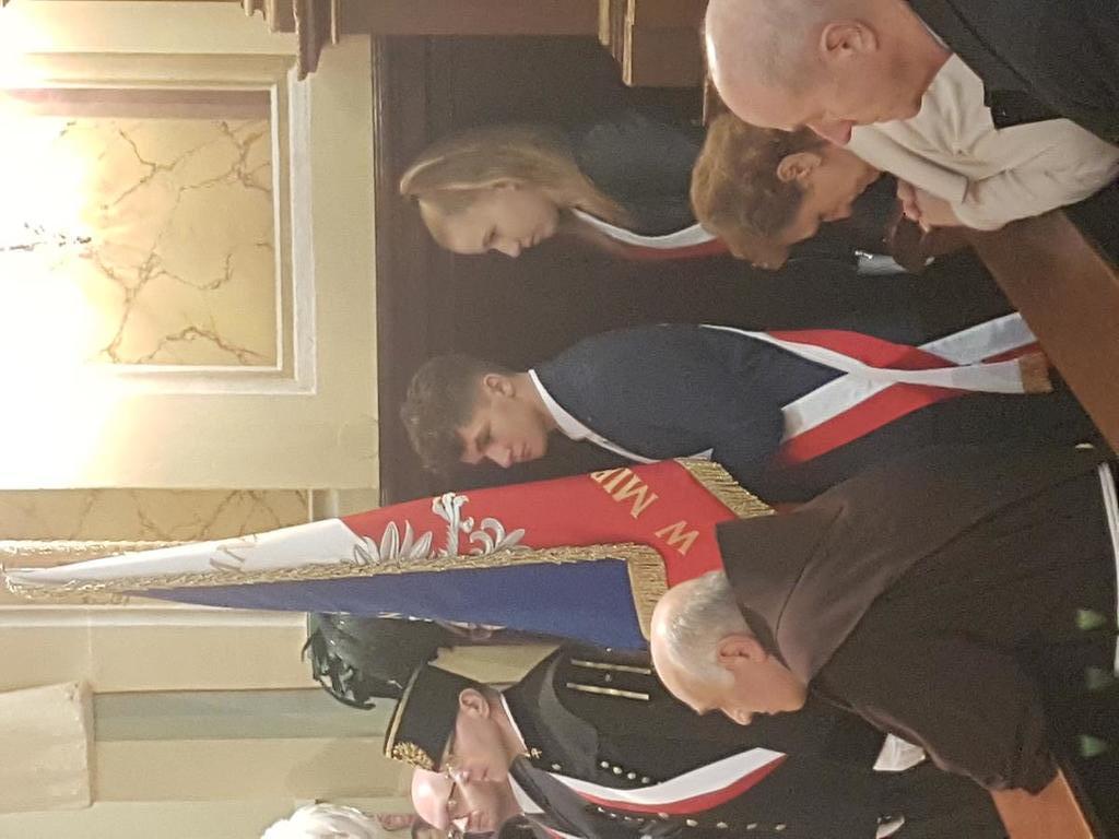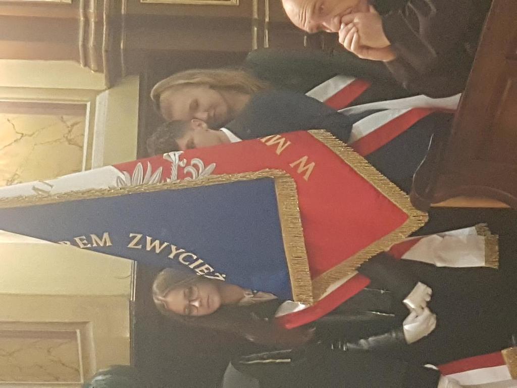 Na zaproszenie Przewodniczącego Zarządu Regionu Pana Szymona Wawrzyszko Poczet sztandarowy naszej szkoły uczestniczył w uroczystym powitaniu obrazu Matki Bożej Robotników Solidarności w Oddziale Regionu Ziemia Przemyska NSZZ „Solidarność” w kościele pw. Trójcy Przenajświętszej w Jarosławiu. Historia obrazu jest ściśle związana z życiem i działalnością naszego Patrona bł. ks. Jerzego Popiełuszki. To nasz Patron po raz pierwszy w 1983 roku zorganizował Ogólnopolską Pielgrzymkę Ludzi Pracy na Jasną Górę dla robotników Huty Warszawa. Rok później pielgrzymi przybyli z wielu regionów Polski i modlili się o dobrą i godną pracę oraz godne traktowanie pracowników. Każdego roku podczas mszy św. Na jasnej Górze obraz przejmuje ten Region, który będzie organizatorem Pielgrzymki Ludzi Pracy w roku kolejnym. Ten zaszczytny obowiązek w 2020 roku przypadnie wspólnie Regionowi Rzeszowskiemu NSZZ „Solidarność” oraz Regionowi Ziemia Przemyska NSZZ „Solidarność”