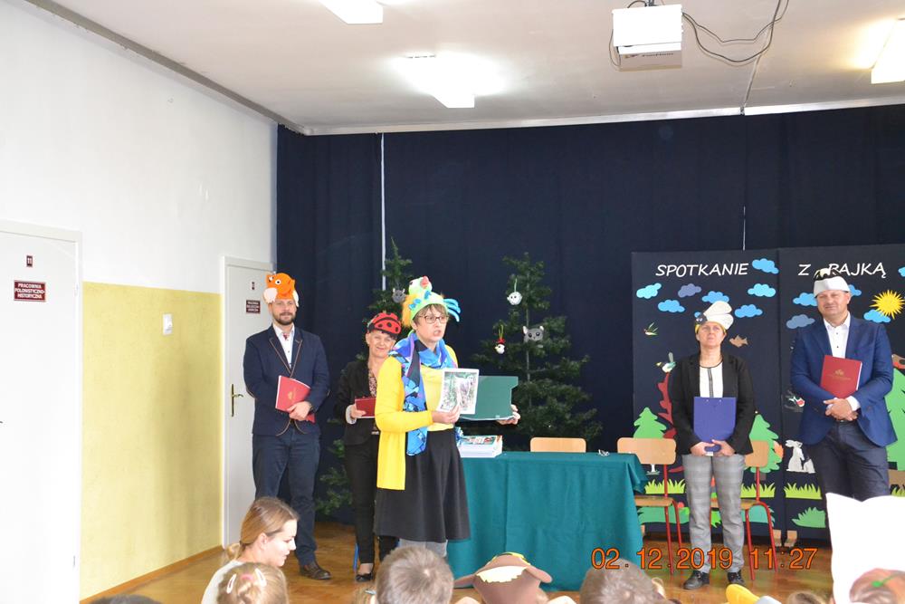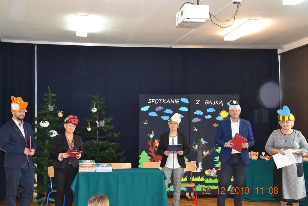 W dniu 2 grudnia dzieci z przedszkola oraz uczniowie klas I – III uczestniczyli w „Spotkaniu z bajką”. Było to kolejne z cyklicznych spotkań organizowanych każdego roku, jednak tym razem odbyło się ono w naszej szkole. Wójt Gminy Pan Daniel Krawiec, Dyrektor Gminnego Ośrodka Kultury Pan Łukasz Mróz, Dyrektor Gminnego Ośrodka Pomocy Społecznej Pani Barbara Oleksiewicz, Pani Dyrektor Szkoły Krystyna Serwańska oraz Pani Bibliotekarka Beata Stęchły z Wiejskiej Biblioteki w Mirocinie zaprezentowali naszej młodej, lecz jakże wymagającej publiczności zabawne wiersze o zwierzętach ( „Modliła się raz myszka do Świętego Franciszka”, „Czarna Krowa”, „Myśli niedźwiedzia”, „Bosa osa”, Żółw i Żuraw”, „Śledź”, „Kto piękniejszy”, „Ośle troski”, „Jeż”, „Łaciaty świat”, „Stonka w japonkach”). Następnie Dyrektor Biblioteki Publicznej Pani Marta Orzechowska-Haftek zaprosiła dzieci do wspólnego recytowania znanych wierszyków o zwierzętach, a później zadała kilka zagadek oczywiście o tematyce zwierzęcej, których rozwiązywanie dostarczyło uczniom wiele radości. Na koniec wszystkie dzieci otrzymały bajki o zwierzętach jako nagrody za aktywny udział w „Spotkaniu z bajką”.