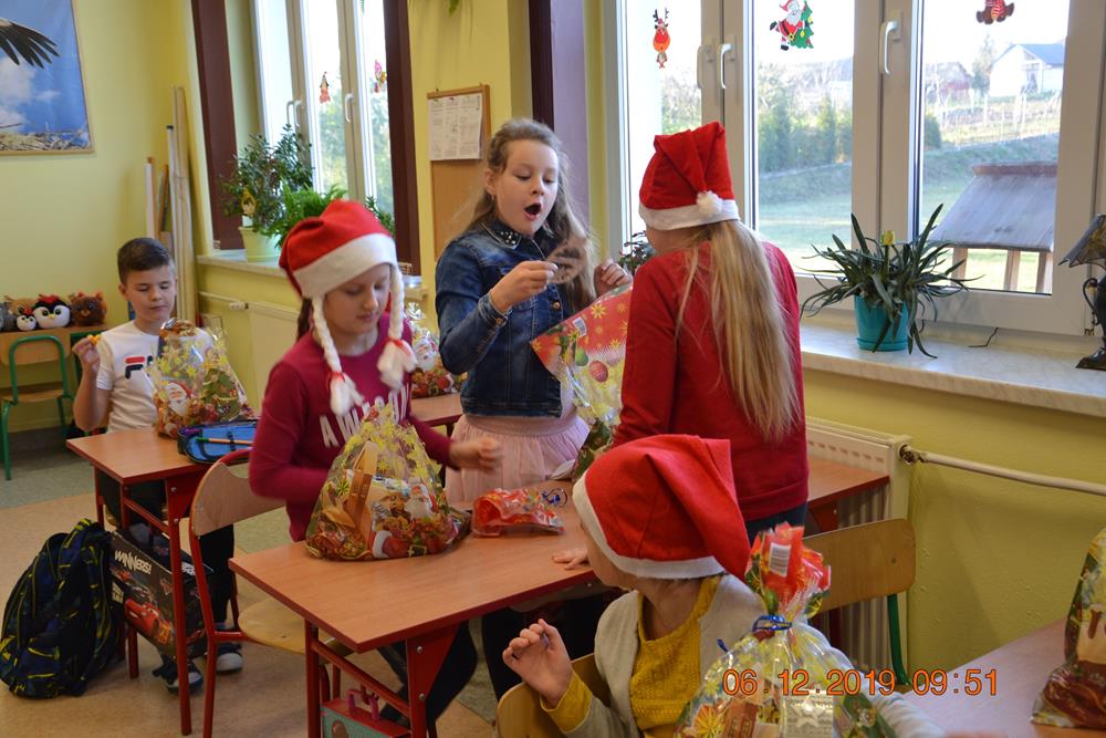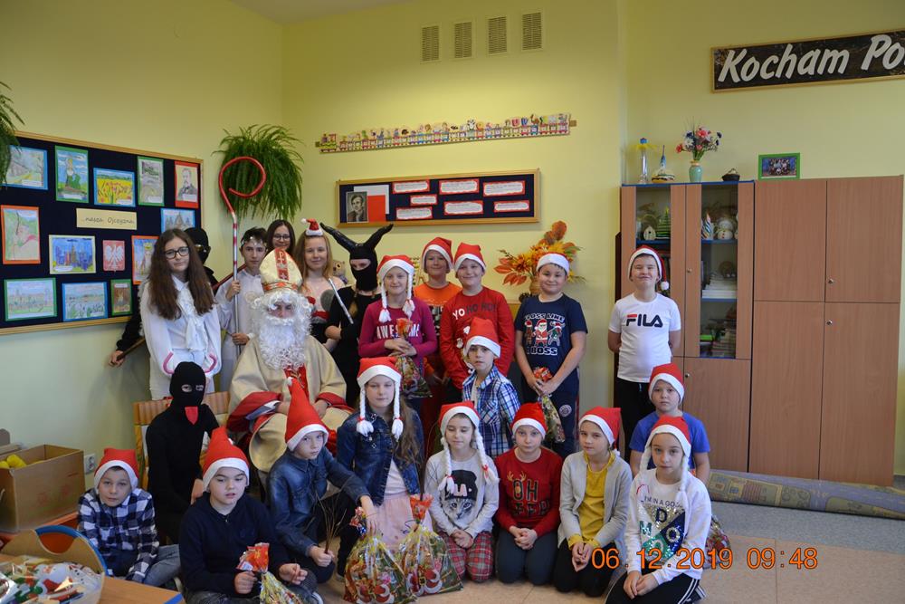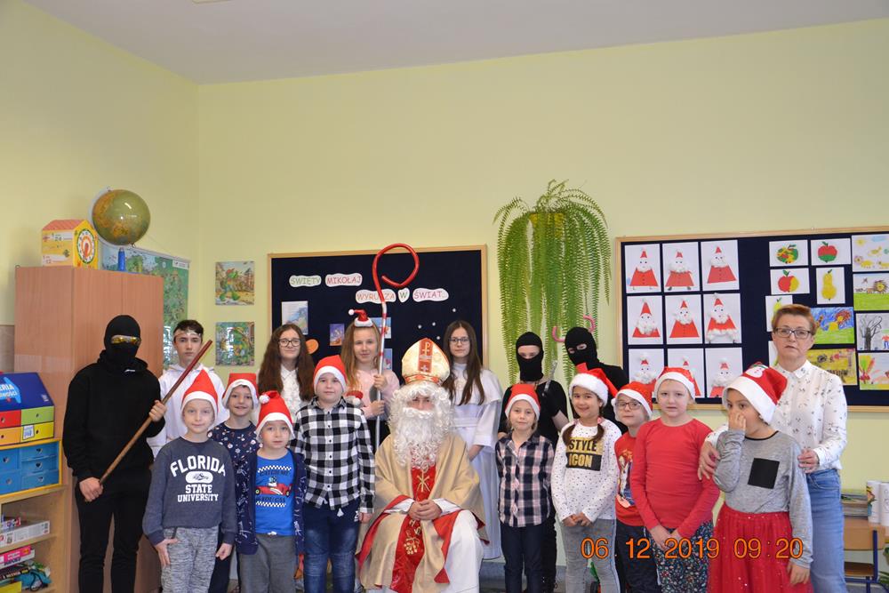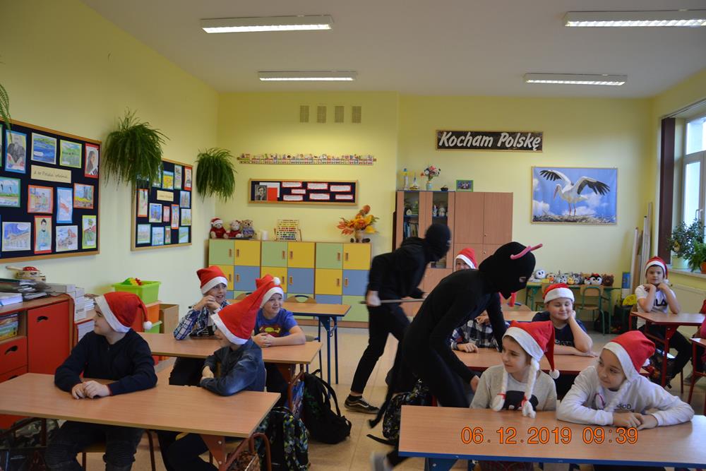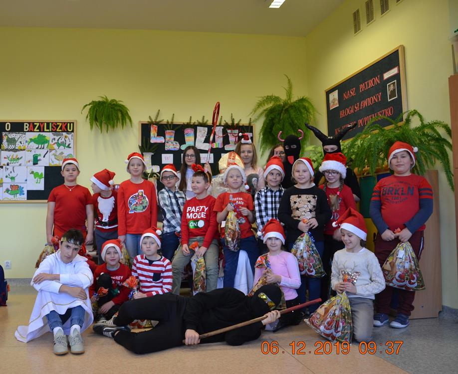 W dniach 4 i 6 grudnia naszą szkolę odwiedził Święty Mikołaj, który wraz ze swoimi pomocnikami przywiózł dla naszych przedszkolaków i uczniów prezenty. Wszyscy ci, którzy byli grzeczni przez cały rok (a takich uczniów mamy bardzo wielu) otrzymali od Mikołaja wspaniałe prezenty, zaś ci którzy nad swoim zachowaniem muszą jeszcze troszeczkę popracować dostali rózgi (oczywiście razem z prezentami). Święty Mikołaj to gość bardzo oczekiwany w naszej szkole, a jego przybycie zawsze dostarcza wszystkim starszym i młodszym uczniom wiele radości. Dodatkowo uczniowie biorący udział w kolejnej edycji projektu „Mam tę moc” w dniu 6 grudnia zostali zaproszeni na spotkanie z Mikołajem do Wiejskiego Domu Kultury w Gorliczynie, gdzie również otrzymali prezenty a w ramach podziękowania zaśpiewali Mikołajowi i towarzyszącej mu pomocnicy piękne piosenki.