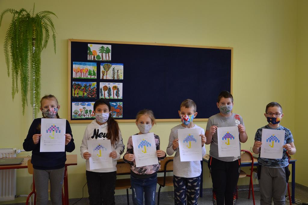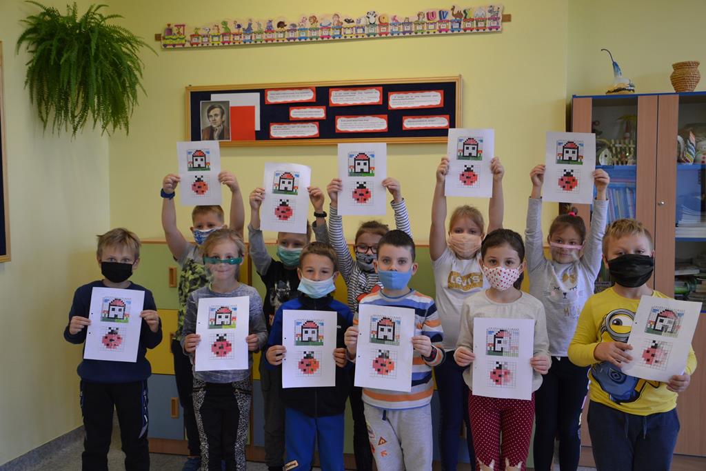 22 października w klasach I –III odbyły się zajęcia z kodowania pod hasłem „Kodowanie pełne barw”. Uczniowie kodowali określonymi kolorami obrazki za pomocą kwadratowych symboli na przygotowanych planszach (po właściwym zakodowaniu powstały obrazki pełne kolorów związane z otaczającym światem). Tworzyli lustrzane odbicie niektórych obrazków i zapisywali kody. Rozkodowywali według instrukcji wyrazy ukryte pod określonymi kodami i wyznaczali z wykorzystaniem kodów i tablicy interaktywnej drogi w labiryncie. Dzieci doskonaliły umiejętności myślenia logicznego i strategicznego oraz orientacji przestrzennej. 23 października 2020 roku uczniowie klasy V wykorzystali umiejętności kodowania na lekcji historii. Pracując w grupie kodowali za pomocą znajomości stolic naszych sąsiadów na wschodzie, południu i zachodzie nazwy i położenie ich państw. W przyszłości może to rozbudzić w dzieciach chęć odkrywania dziejów tych krajów w relacjach z naszym państwem. Tak kodowana mapa Europy to wspaniała metoda na naukę poprzez zabawę.