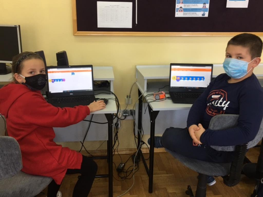 Pierwsze wydarzenie „Każdy może programować” odbyło się na zajęciach pozalekcyjnych z programowania. Uczniowie za pomocą kodów kreskowych oraz programu EdBlocks programowali roboty Edison rozwijając przy tym kreatywność i logiczne myślenie. Kolejne wydarzenie z CodeWeek pod hasłem Kodujemy odbyło się 21 października 2020 r. Na zajęciach świetlicowych uczniowie kl. I - III rozkodowywali obrazy zakodowane za pomocą kolorowych kwadratów a chętni uczniowie zamieniali się w roboty sterowane przez kolegów i koleżanki dobrze się przy tym bawiąc i kształcąc wyobraźnię przestrzenną, pomysłowość i twórcze działanie.