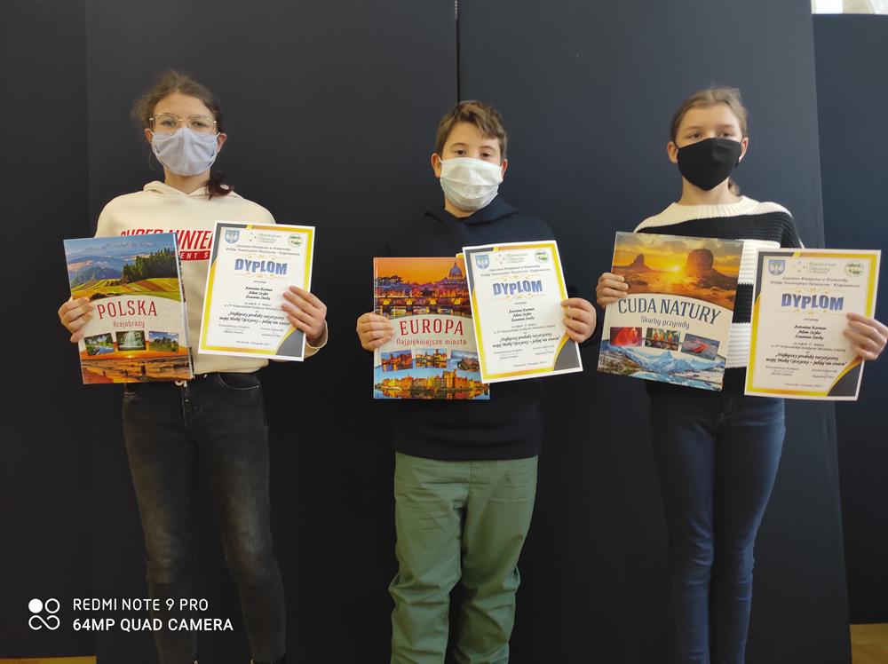 II miejsce zdobyli uczniowie, którzy przygotowali prezentacje i opisali Kościół pw. Niepokalanego Serca Najświętszej Maryi Panny w Mirocinie - Antonina Korman, Zuzanna Stecko i Adam Szylar. Trzeci tytuł laureata również przypadł zespołowi z naszej szkoły. Zdobyły go uczennice klasy VI: Lena Kurzawa, Magdalena Telega i Oliwia Węgrzyn, które zainspirował temat historii powstania Kościoła Matki Bożej.