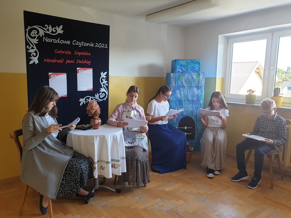 Nasza szkoła wzięła udział w X edycji akcji Narodowe Czytanie. Jest to ogólnopolska inicjatywa organizowana przez Parę Prezydencką RP. W tegorocznym wydaniu czytaliśmy Moralność pani Dulskiej Gabrieli Zapolskiej. To komedia w trzech aktach, która na stałe wprowadziła do naszego języka pojęcie „dulszczyzna”. Życie na pokaz, relacje rodzinne, zakłamanie, obłuda i fałsz ciągle przeplatają się w utworze, zaskakując uniwersalnością i ponadczasowością.