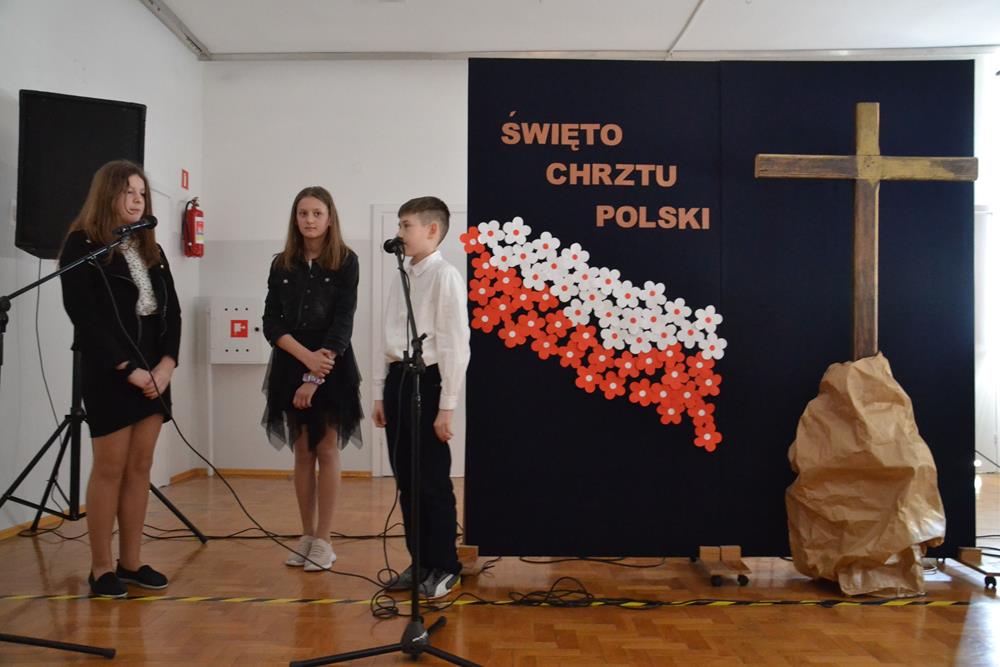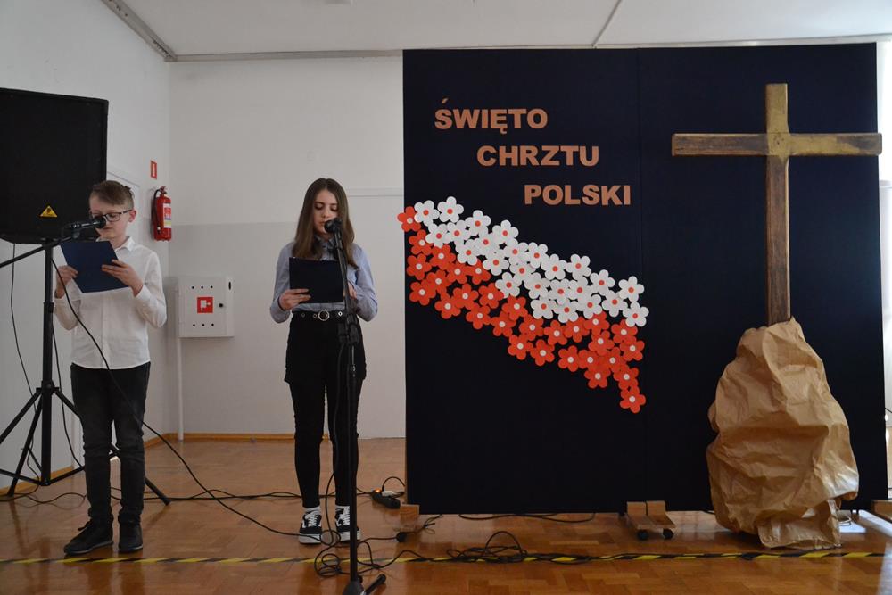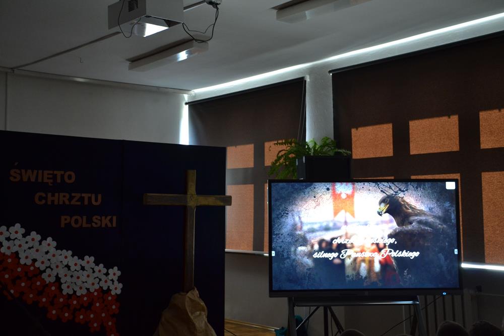 2 lutego 2019 roku Sejm Rzeczpospolitej Polskiej ustanowił, iż dzień 14 kwietnia będzie państwowym Świętem Chrztu Polski, dlatego z tej okazji po raz pierwszy w naszej szkole odbyła się akademia. Źródła historyczne na temat chrztu księcia Mieszka I są bardzo skąpe oraz rozbieżne, ale każdy Polak wie, że chrzest był poprzedzony małżeństwem z czeską księżniczką Dobrawą i odbył się w 966 roku. Było to przełomowe wydarzenie w dziejach naszego państwa, które wprowadzało nas w krąg cywilizacyjny Europy Zachodniej, a dzisiaj szczególnie przekonujemy się, jak ważne było przyjęcie chrześcijaństwa w obrządku łacińskim. Przygotowana akademia oraz prezentacja multimedialna stały się ważną lekcją religii oraz historii, a także wprowadziły nas w świąteczny nastrój.