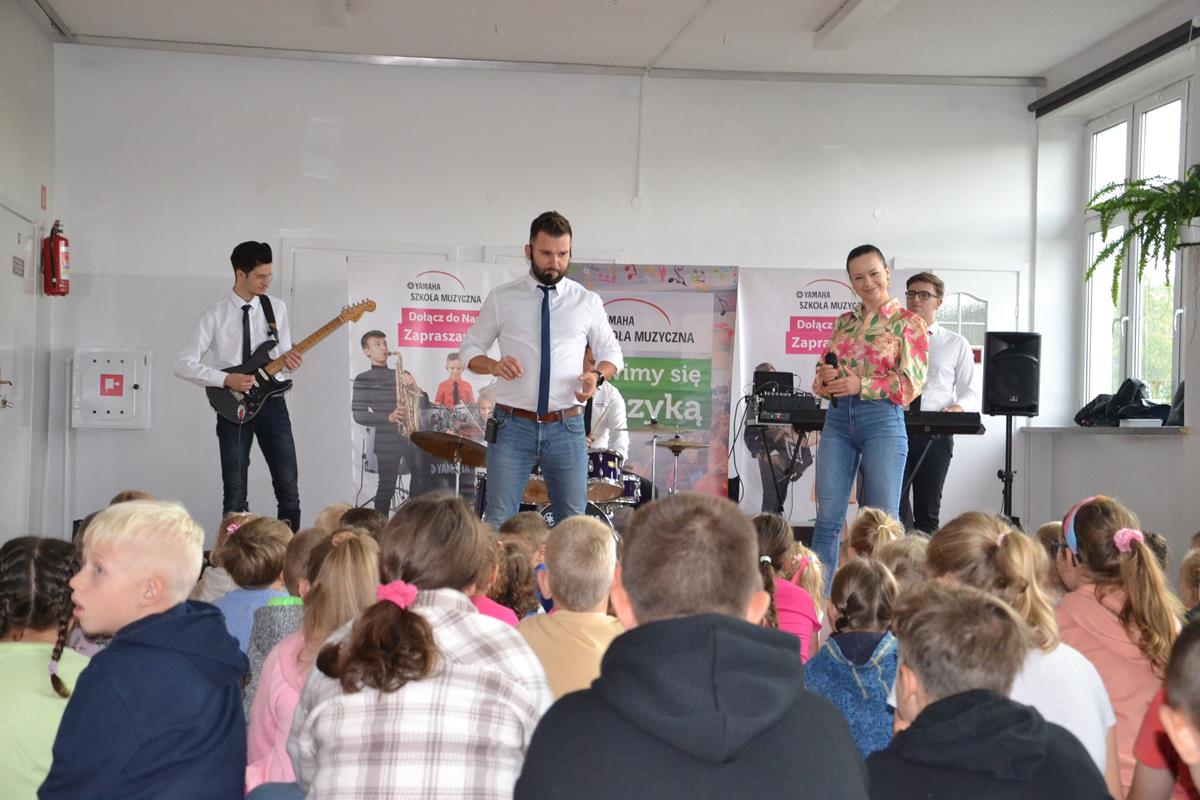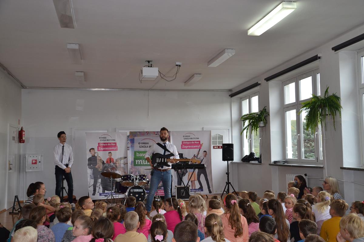 W dniu 15 września (czwartek) przedstawiciele Szkoły Muzycznej YAMAHA odwiedzili naszą szkołę i zagrali specjalny koncert promujący, aby zachęcić uczniów zarówno starszych, jak i młodszych do nauki gry na instrumentach oraz nauki śpiewu. Uczniowie mieli możliwość poznać różne instrumenty muzyczne, nawet na niektórych zagrać oraz włączyć się aktywnie w śpiew, gdyż repertuar przygotowany był w ten sposób, że wszyscy doskonale znali prezentowane utwory muzyczne. Spotkanie z muzykami z Yamahy było naprawdę ciekawe i dostarczyło nam wielu pozytywnych emocji. Kto wie, być może ktoś z naszej społeczności szkolnej wkrótce odkryje swój muzyczny talent?