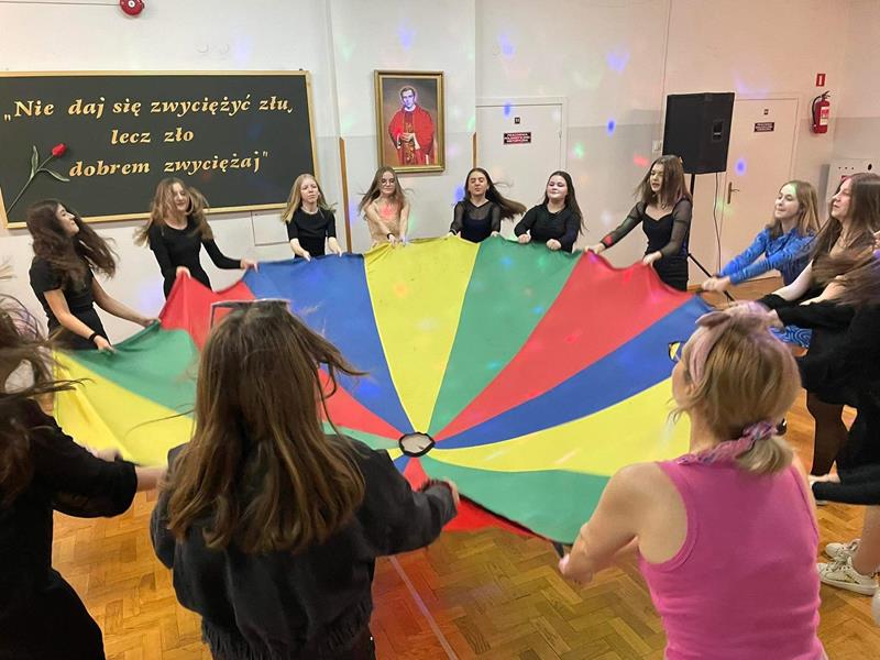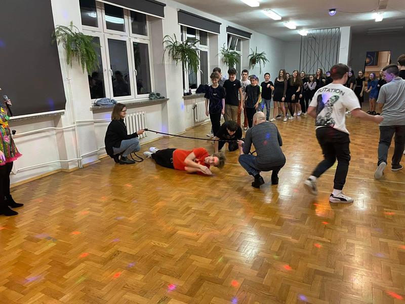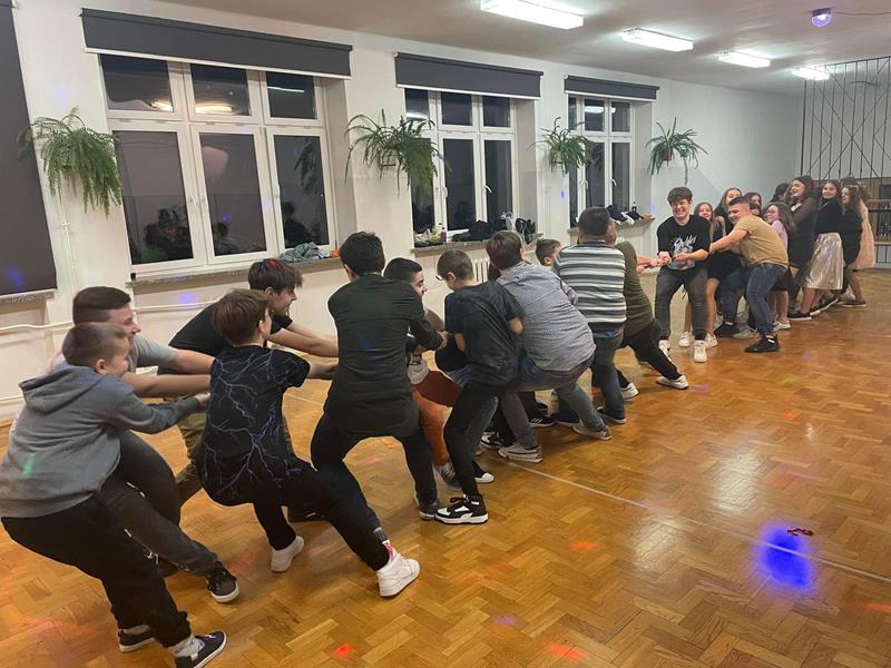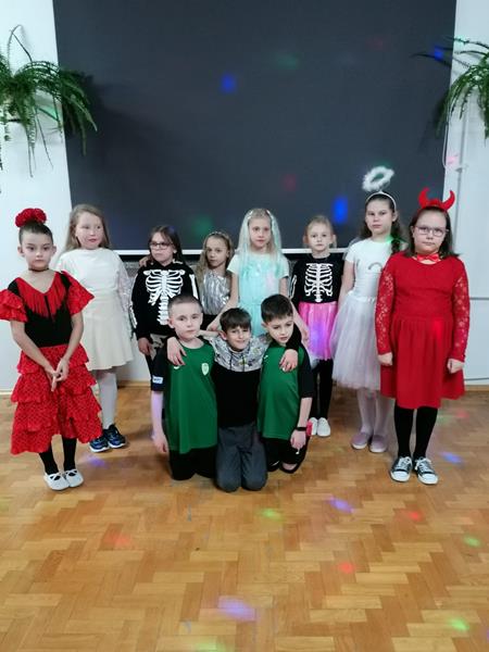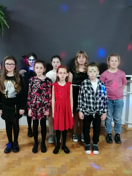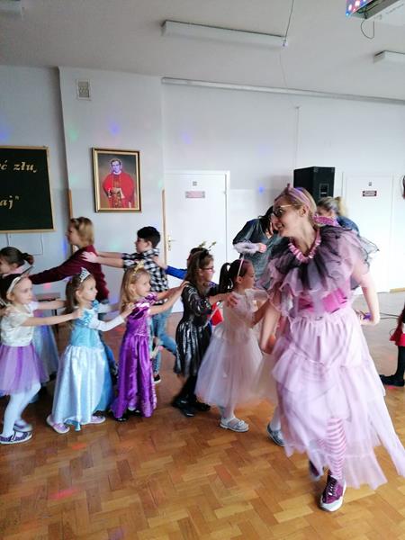Dnia 4 stycznia nasi rodzice zorganizowali dla nas w szkole zabawę choinkową. Zaprosili wodzirejów, zapewnili obsługę sprzętu muzycznego oraz pyszną pizzę, przekąski i napoje. Obowiązywał strój karnawałowy w związku z czym na zabawie w grupie młodszej można było spotkać księżniczki, baletnice, piosenkarki, postacie z bajek, policjantów, lekarzy, strażaków, piłkarzy i inne ciekawe „osobistości”. Wodzirejki zorganizowały zabawy, w których chętnie braliśmy udział, dzięki czemu czas upłynął nam niezwykle szybko. Doskonale się bawiliśmy, dlatego bardzo serdecznie dziękujemy Radzie Rodziców za zorganizowanie zabawy.