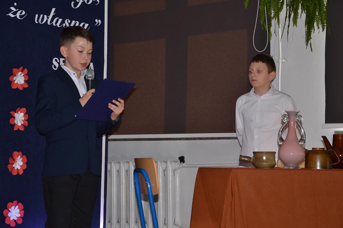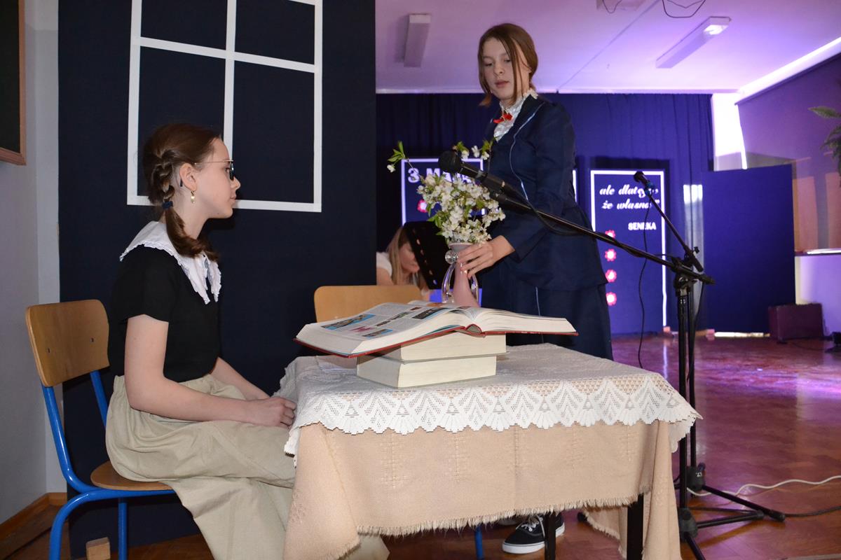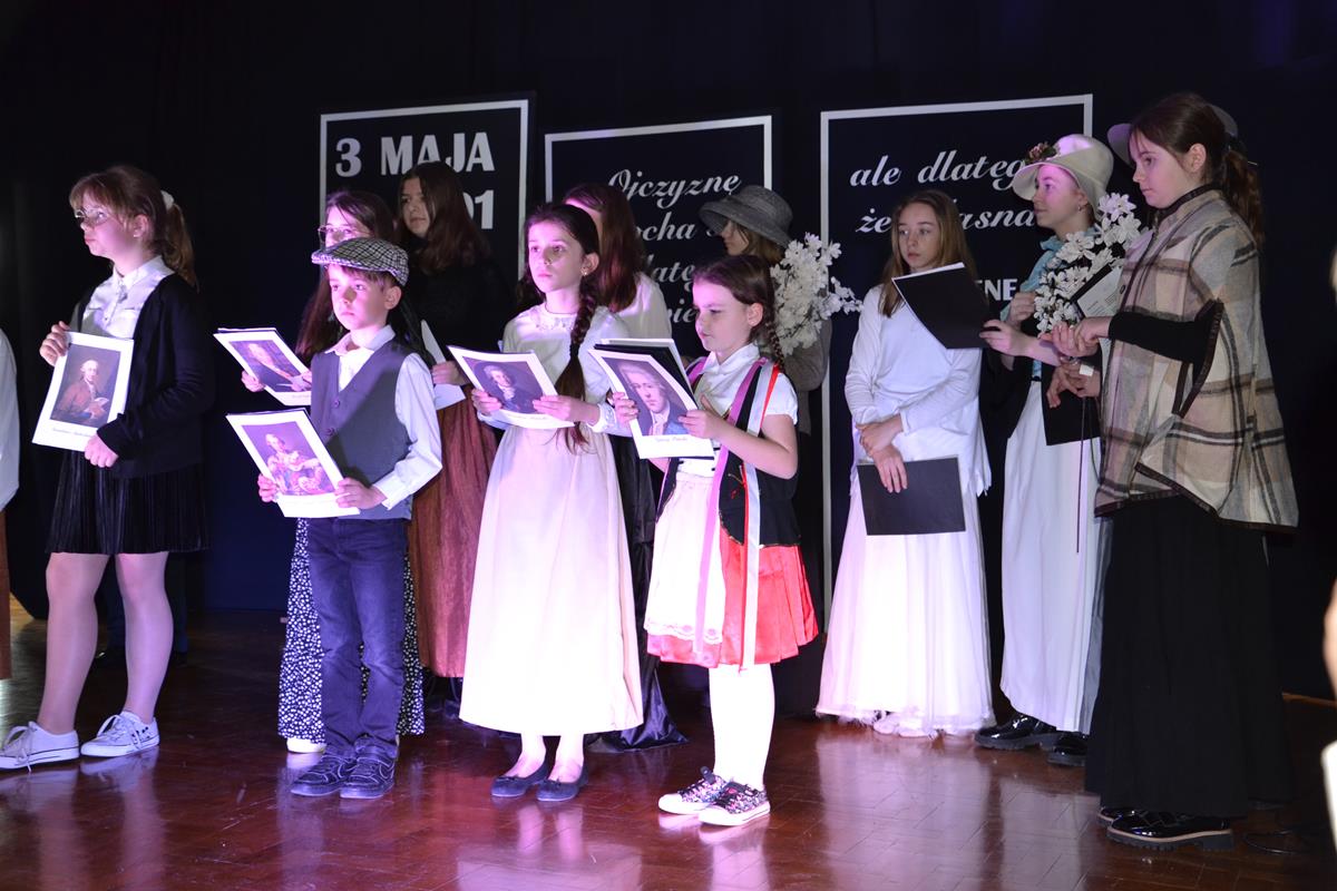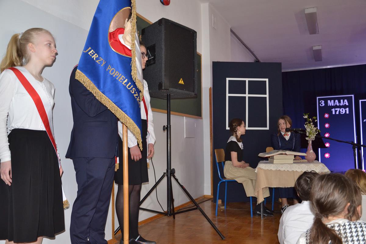 Motywem przewodnim przedstawienia była scena z XIX wieku, rozmowy matki (w tej roli Kornelia Mazur) z córką (Rozalia Mazur). Matka, pamiętająca czasy niepodległego państwa polskiego, starała się wytłumaczyć córce okoliczności uchwalenia Konstytucji 3 maja oraz przyczyny upadku Polski. „Przenosząc się w czasie”, można było zobaczyć kłótnię przeciwnika konstytucji Klemensa Branickiego (Hubert Grocholski) ze zwolennikami naprawy państwa (Oliwier Gwóźdź oraz Igor Markowicz). Atmosferę oczekiwania na ważne decyzje 1791 roku zaprezentowały również mieszczki (Milena Kotlińska, Zuzanna Piątek oraz Marcelina Bukowy), które rozprawiały o wielkich czynach sejmujących. Na koniec marszałek Sejmu Wielkiego – Stanisław Małachowski (Bartosz Babik) odczytał tekst Konstytucji. Całość przedstawienia dopełniły wiersze (wyk. Patrycja Hołub, Mikołaj Mazur, Oliwier Gwóźdź) i piosenki (wyk. Julitka Wojdyła, Zosia Kisiel, Marcelina Bukowy, chórek szkolny).