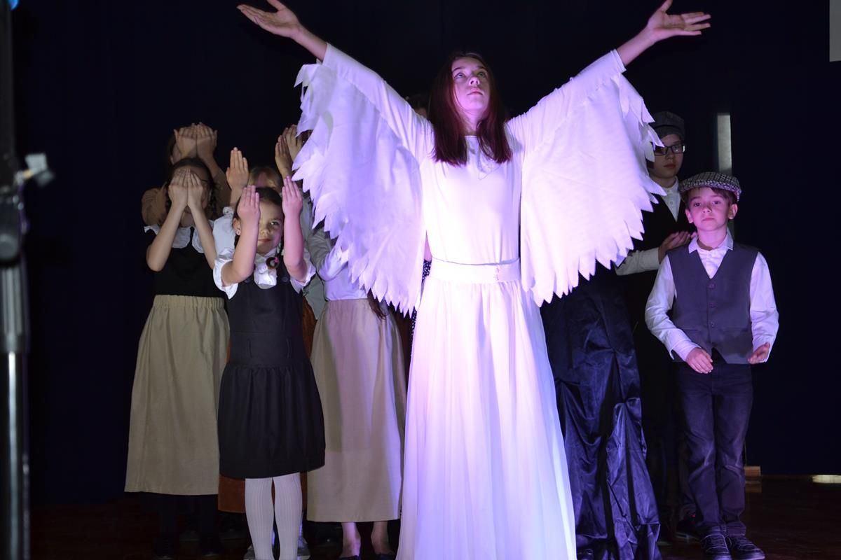 Występ rozpoczął się pantomimą (Biały Orzeł - Laura Słoma) w poruszający sposób ukazującą trudną historię naszego kraju, którego trzech zaborców próbowało pozbawić tożsamości narodowej.