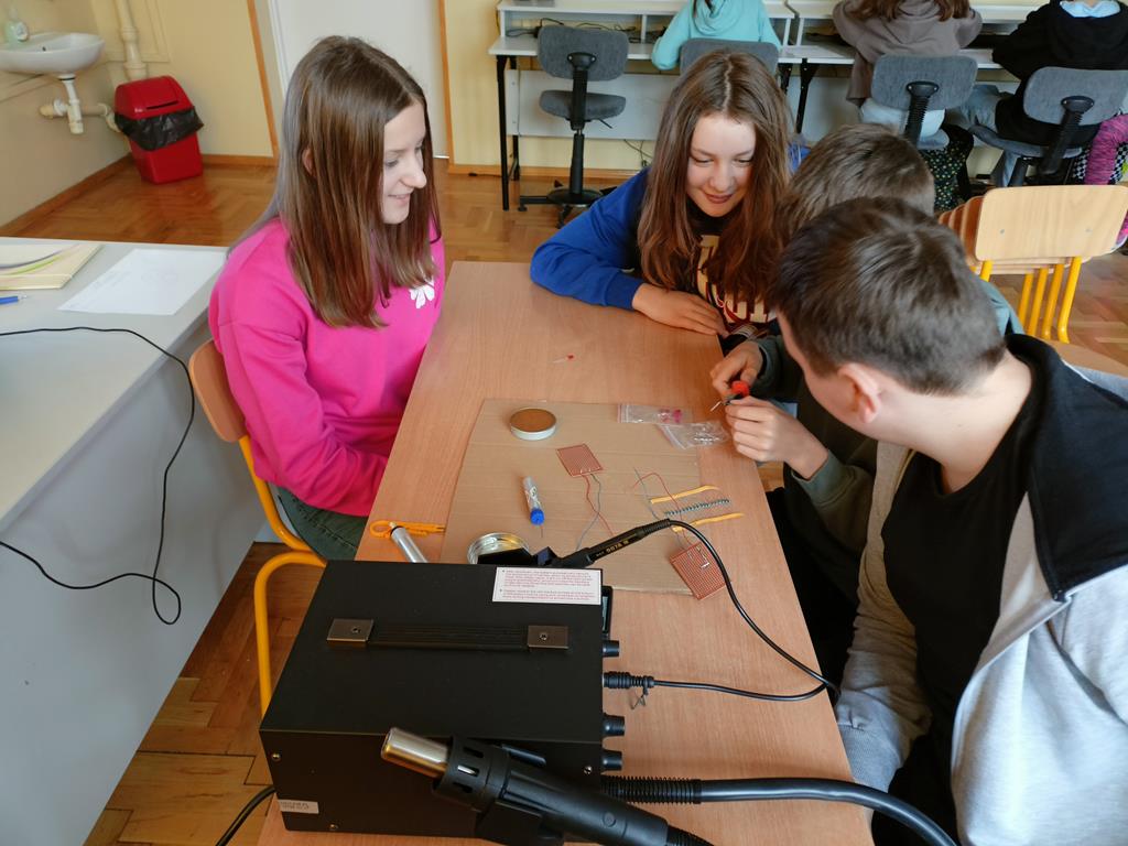 Lekcje techniki prowadzone z wykorzystaniem sprzętu pozyskanego w ramach projektu #LaboratoriaPrzyszłości i #LaboratoriaPrzyszlosci przybliżyły uczniom Szkoły Podstawowej w Mirocinie, trudne zagadnienia z elektroniki. Z cyklu „Obwody elektryczne i elementy elektroniczne” szóstoklasiści zdobywali umięjętności wykonywania układów elektronicznych: lutowali diody, oporniki, przewody na płytkach obwodów drukowanych z wykorzystaniem stacji lutowniczej. Wykorzystując gorące powietrze i odsysacz do cyny rozlutowywali elementy celem ich wymiany. Zajęcia te umożliwiły uczniom praktyczne przybliżenie problematyki związanej z elektroniką.