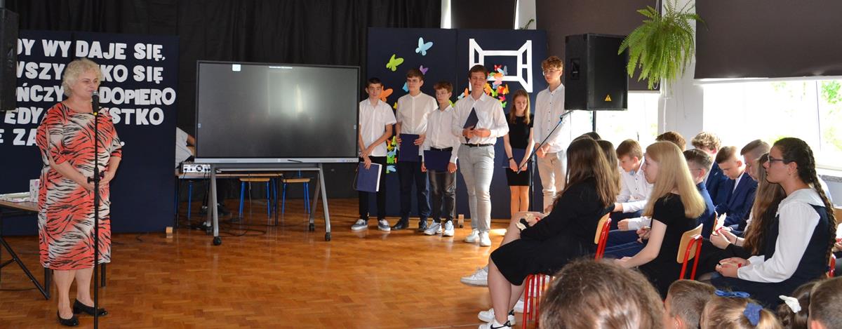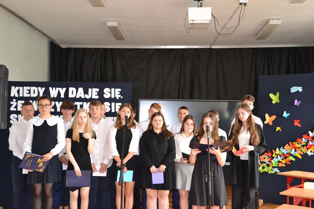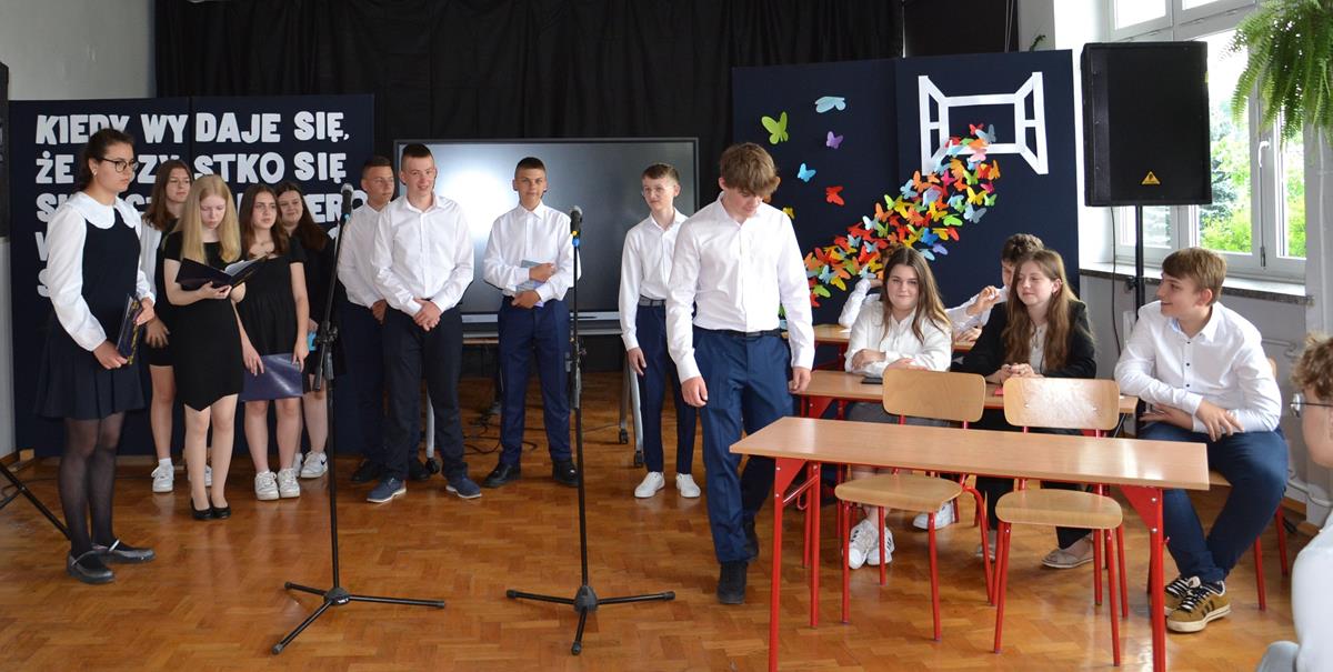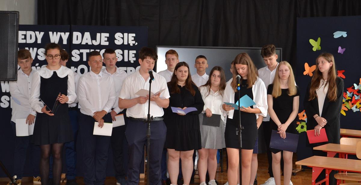 W czwartek 22 czerwca podczas uroczystej akademii pożegnaliśmy się z naszymi od jutra już absolwentami – uczniami klasy ósmej. Aż trudno uwierzyć, że nadszedł ten czas, że tak szybko upłynęły wspólnie spędzone lata i nie będziemy już mijać się na szkolnym korytarzu. Wiemy jednak, że zawsze miło będziemy wspominać ten wspólny czas. Mamy nadzieję, że nasi koledzy i koleżanki, gdy już dostaną się do wymarzonych szkół średnich (czego dziś życzyła im Pani Dyrektor) z sentymentem i nutką nostalgii będą wspominać swoją macierzystą szkołę, w której stawiali pierwsze edukacyjne kroki i podejmowali pierwsze edukacyjne wyzwania. Ósmoklasiści życzymy Wam powodzenia na nowym etapie kształcenia - zdobywajcie wiedzę, spełniajcie swoje marzenia i rozwijajcie pasje.
