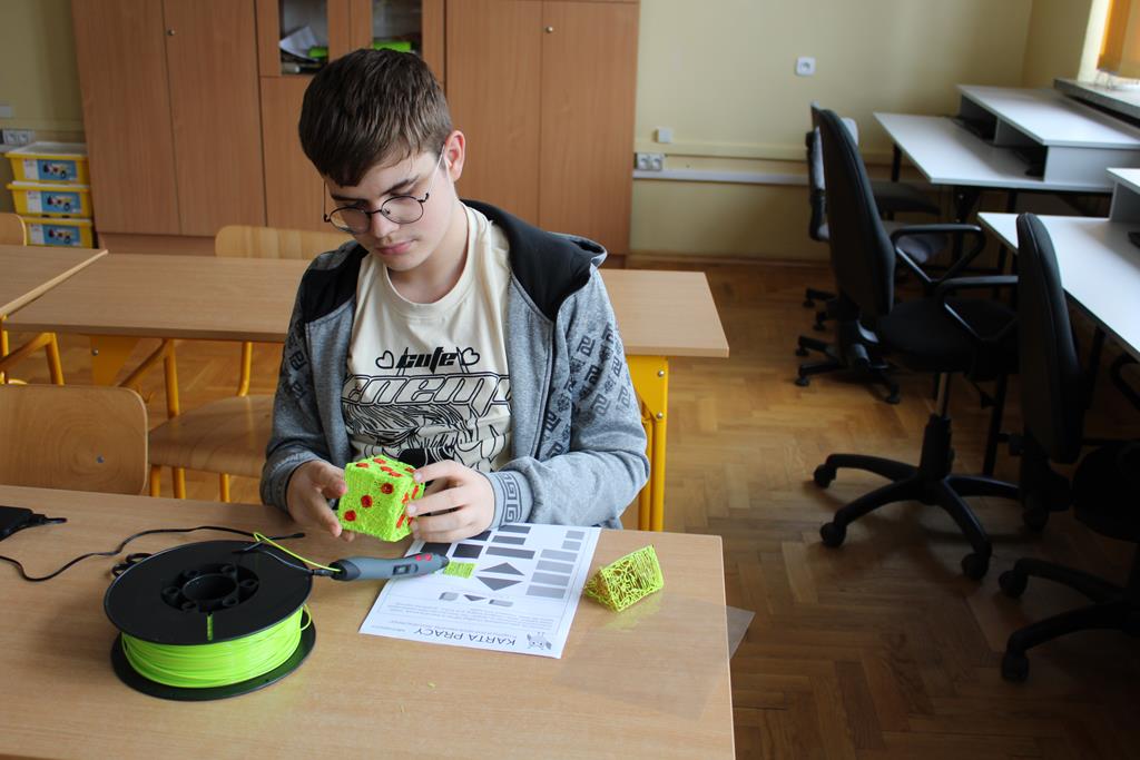 Uczniowie rozwijali swoją wyobraźnię i kreatywność poprzez zabawę długopisami 3D otrzymanymi w ramach projektu Laboratoria Przyszłości #LaboratoriaPrzyszłości i #LaboratoriaPrzyszlosci. Początkowo mieli problem z opanowaniem filamentu, który wypływał z długopisów zbyt wolno, ale skorzystali z projekcji filmu jaki poprowadził ich krok po kroku do celu. W przyszłości uczniowie nabiorą więcej wprawy w ich obsłudze i zaczną tworzyć bardziej złożone budowle, bryły czy przedmioty. Zajęcia z długopisami 3D sprzyjają nie tylko współpracy uczniów, kształtują też cierpliwość i dokładność w wykonywaniu danego elementu. Ponadto zajęcia z tym narzędziem pozwalają rozwijać wyobraźnię uczniów i na bieżąco oglądać efekty pracy swojej i całego zespołu.