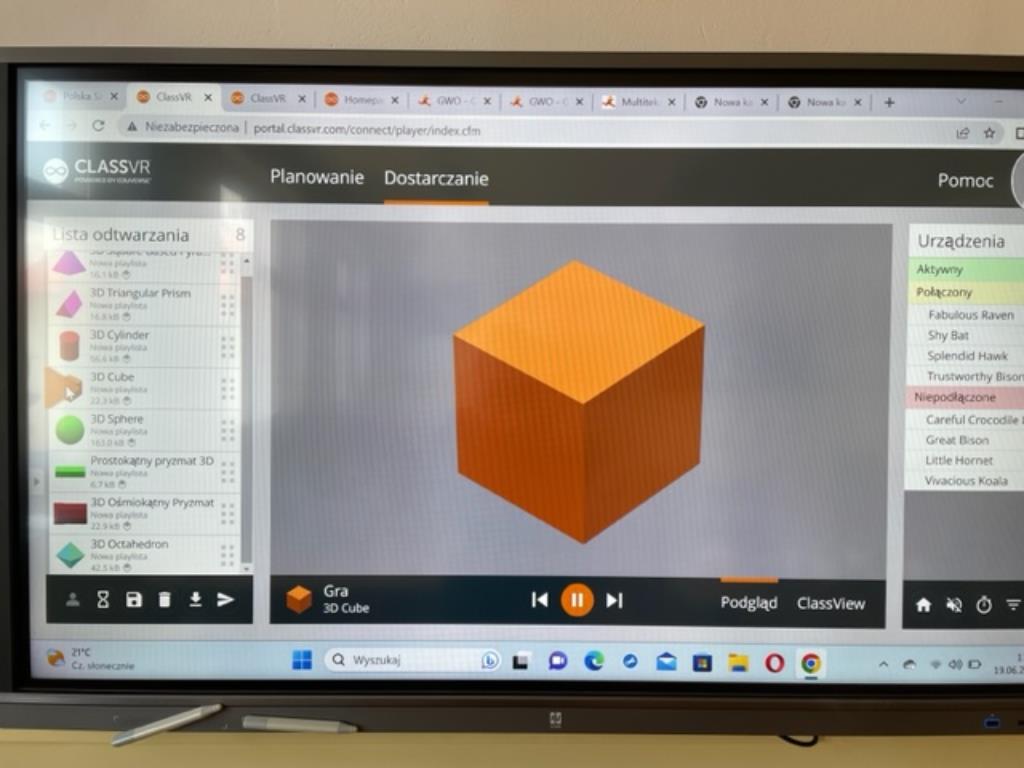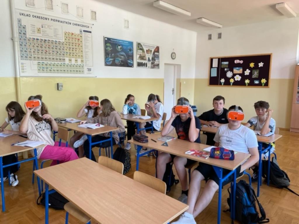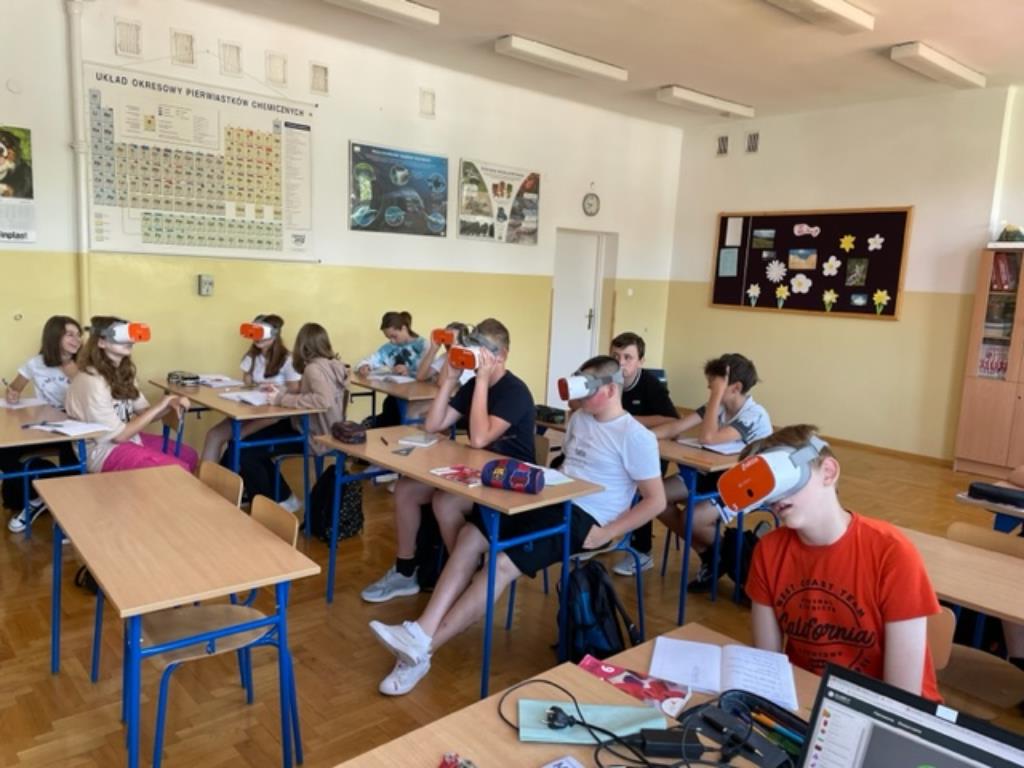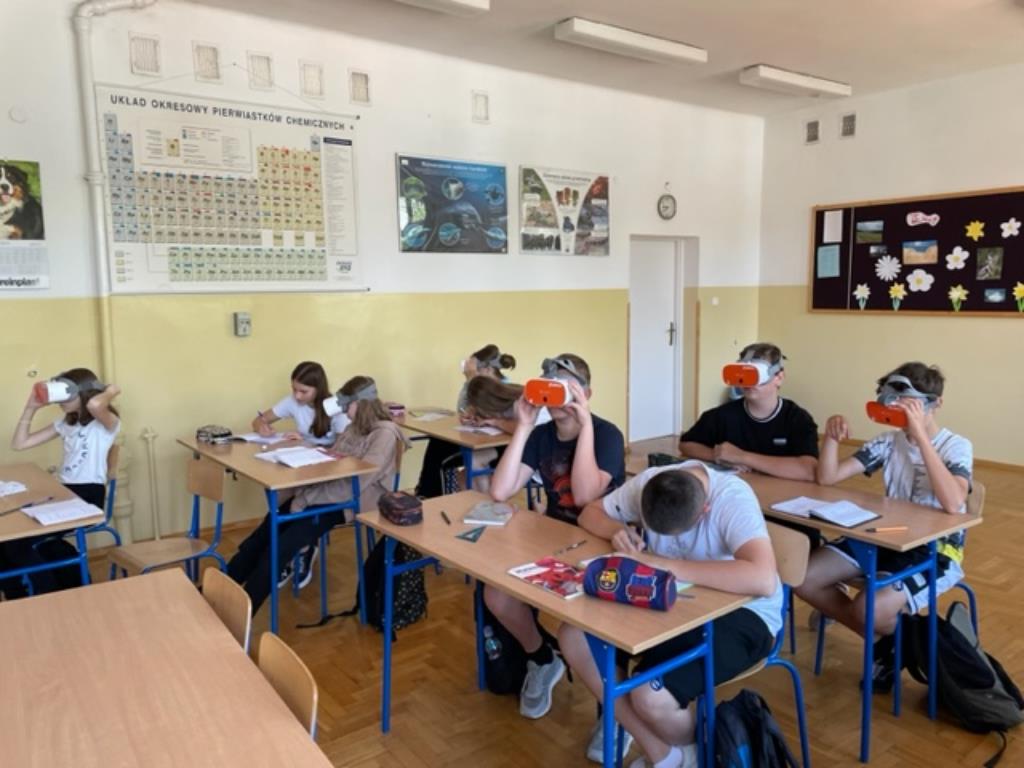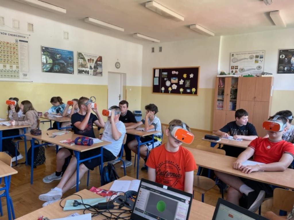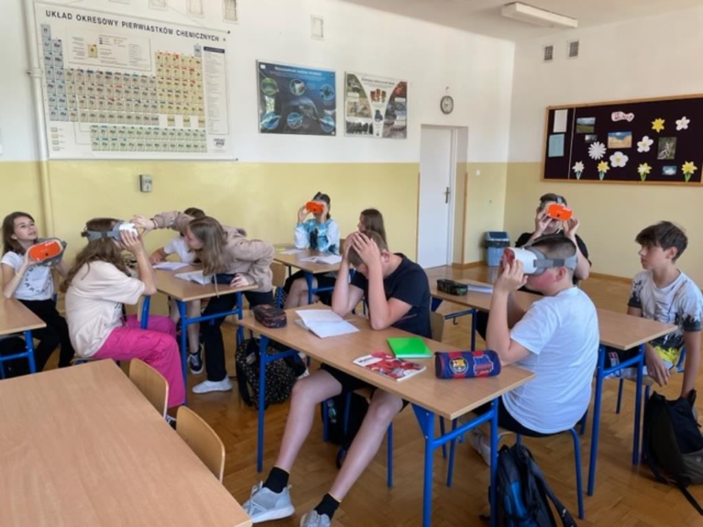 Podczas zajęć uczniowie klasy V i VI mieli okazje poznać świat figur przestrzennych za pomocą wirtualnej rzeczywistości wykorzystując okulary VR, które szkoła zakupiła w ramach programu #LaboratoriaPrzyszłości i #LaboratoriaPrzyszlosci. Wykorzystanie najnowszych technologii zwiększyło zaangażowanie uczniów w proces zdobywania wiedzy i pokazało, że geometria wcale nie musi być nudna