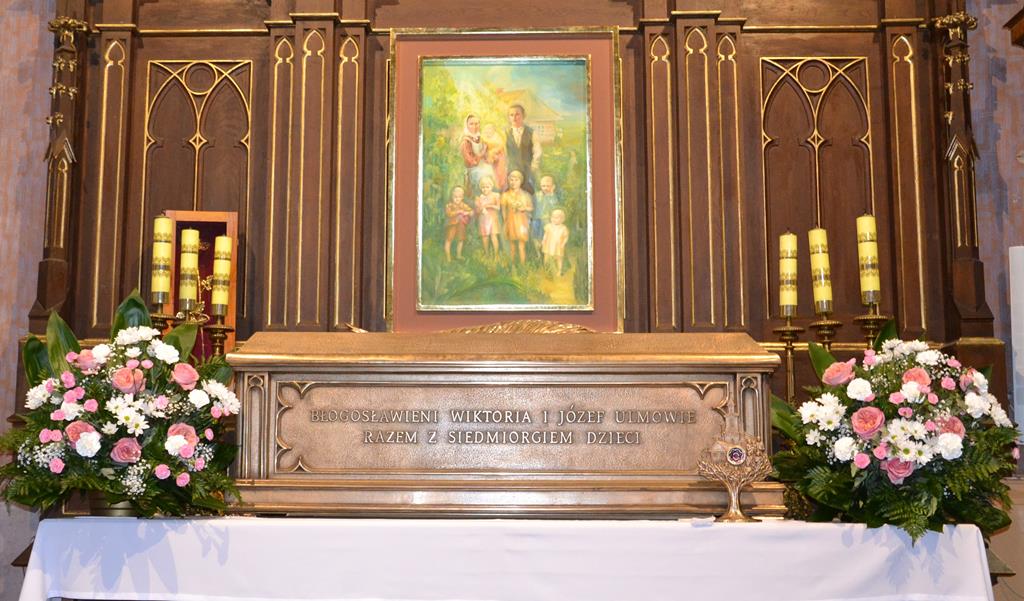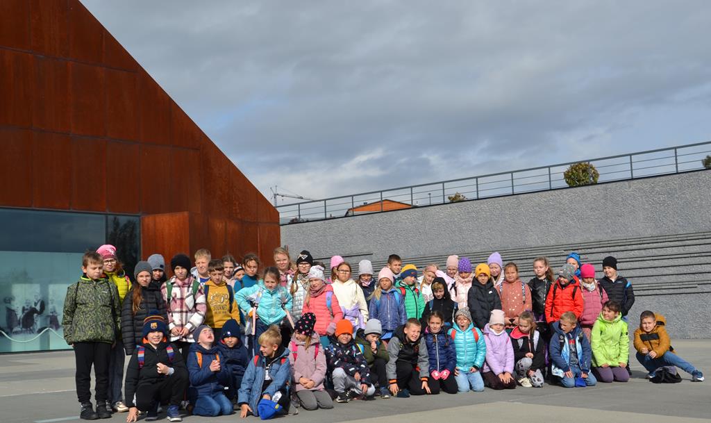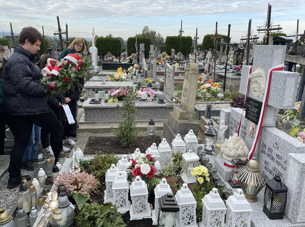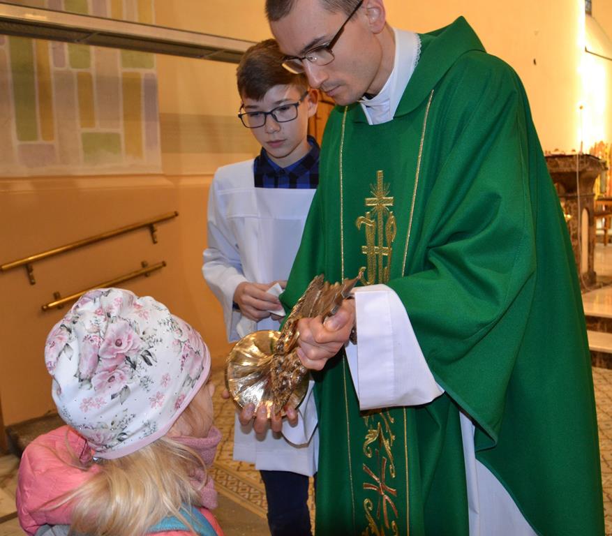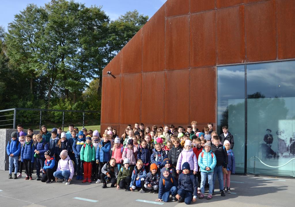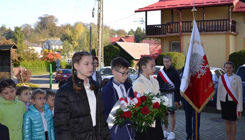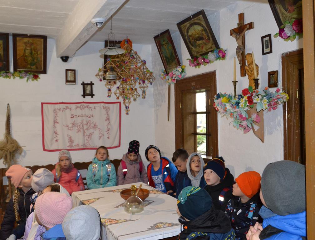 19 października obchodzimy święto naszego patrona błogosławionego księdza Jerzego Popiełuszki (19 października 1984 r., ks. Jerzy Popiełuszko został zamordowany przez funkcjonariuszy IV Departamentu Ministerstwa Spraw Wewnętrznych). W tym roku uroczyste obchody Święta Szkoły podzielone zostały na dwa etapy – we wtorek 17 października ubrani na galowo zebraliśmy się przed budynkiem szkoły, gdzie po odśpiewaniu naszego hymnu szkolnego związanego z postacią patrona przedstawiciele samorządu uczniowskiego przy asyście sztandaru złożyli kwiaty pod tablicą upamiętniająca księdza Popiełuszkę i zapalili symboliczny znicz. Natomiast w czwartek 19 października udaliśmy się na dalsze obchody tego święta do Markowej, gdzie odbyła się uroczysta Msza Św. odprawiona przez naszego księdza Dawida w asyście szkolnego sztandaru. Ksiądz Dawid w pięknym kazaniu przypomniał nam postać księdza Jerzego, duszpasterza ludzi pracy i kapelana „Solidarności”. Przed mszą przywitał nas wikariusz kościoła w Markowej ksiądz Michał, który przybliżył nam sylwetki rodziny Ulmów zaliczonej we wrześniu bieżącego roku w poczet błogosławionych. Opowiedział też o relikwiach, które mogliśmy ucałować zaraz po mszy oraz obejrzeć wnętrze kościała, gdzie udało nam się odnaleźć figurę naszego patrona księdza Jerzego z podpisem, który doskonale znamy: „Zło dobrem zwyciężaj”. Mieliśmy również możliwość odbycia spaceru po Parku Pamięci oraz pomodlenia się na cmentarzu przy grobie tej zacnej rodziny, złożenia wiązanki kwiatów i zaplenia zniczy. Był to też dzień w którym starsi uczniowie (klasy V - VIII) zwiedzali Muzeum Polaków Ratujących Żydów podczas II wojny światowej im. Rodziny Ulmów, zaś młodsze dzieci (klasy I – V) odwiedziły skansen.
