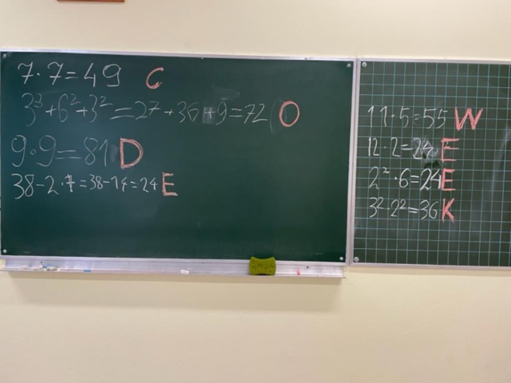 Uczniowie klasy IV na lekcji matematyki za pomocą zaszyfrowanego alfabetu (w postaci wyników działań matematycznych) kodowali i odczytywali wiadomości dobrze się przy tym bawiąc. W ramach utrwalenia lekcji biologii uczniowie kl. VI poprzez zabawę z kodowaniem rozkodowywali nazwę największego parzydełkowca. Na lekcji języka niemieckiego w kl. V uczniowie musieli rozwiązać zadanie, aby poznać zakodowane hasło.