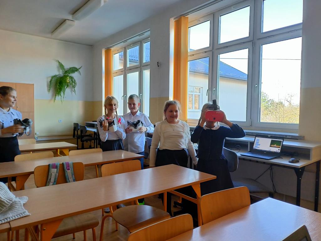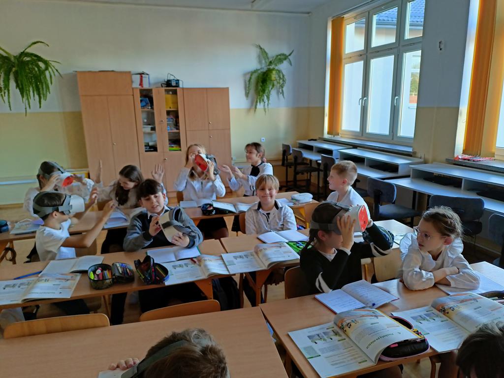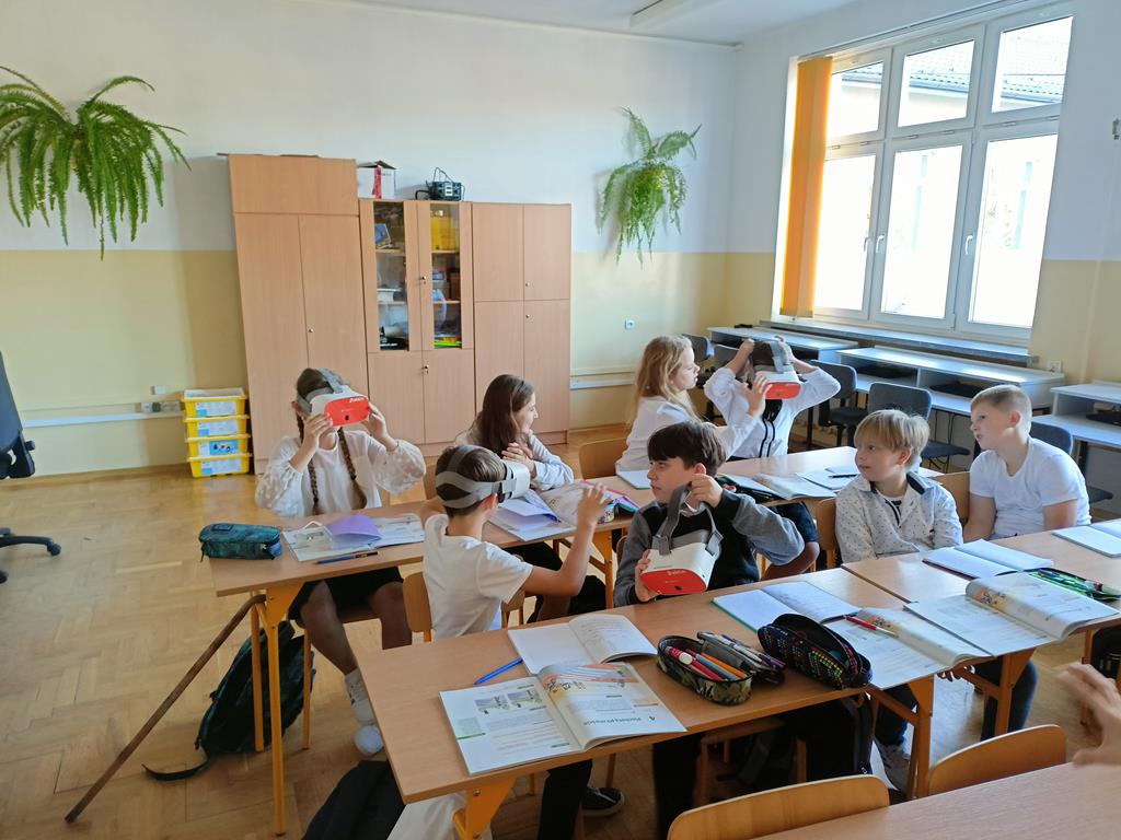 Dzięki zakupionym okularom VR, korzystając z możliwości jaką daje technologia wirtualnej rzeczywistości, uczniowie mogli zwiedzać ciekawe miejsca w Europie. Byli miedzy innymi na "wycieczce" w: Talinie, Rzymie, Bernie i innych ciekawych miejscach.