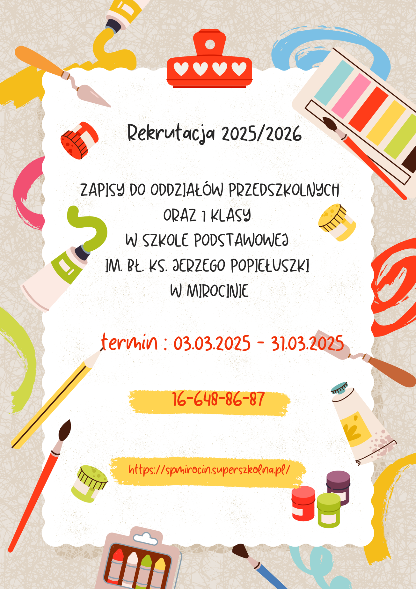 karta zapisu do szkoły [145.50 kB] WNIOSEK zapisku dziecka do przedszkola [89.00 kB] regulamin rekrutacji do oddzialu przedszkolnego2025-2026 [21.54 kB]