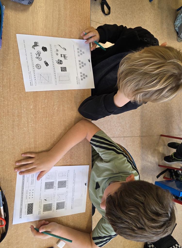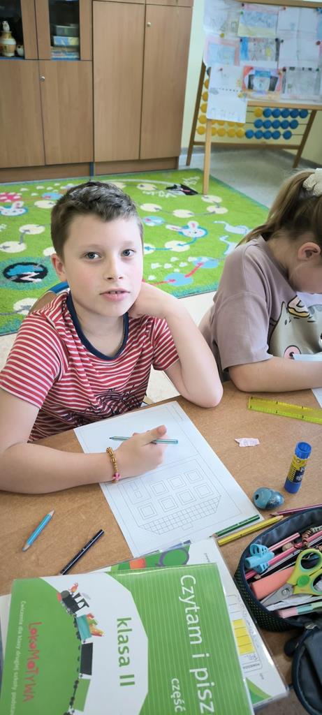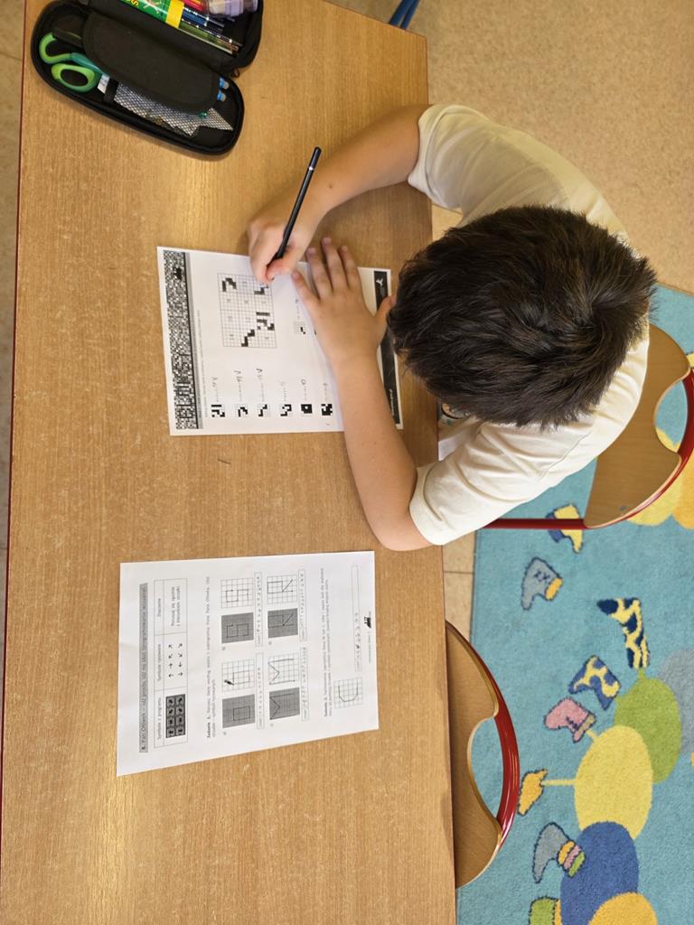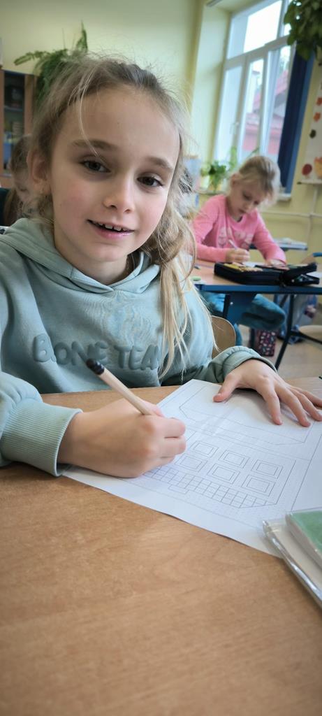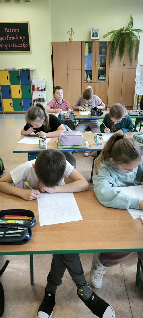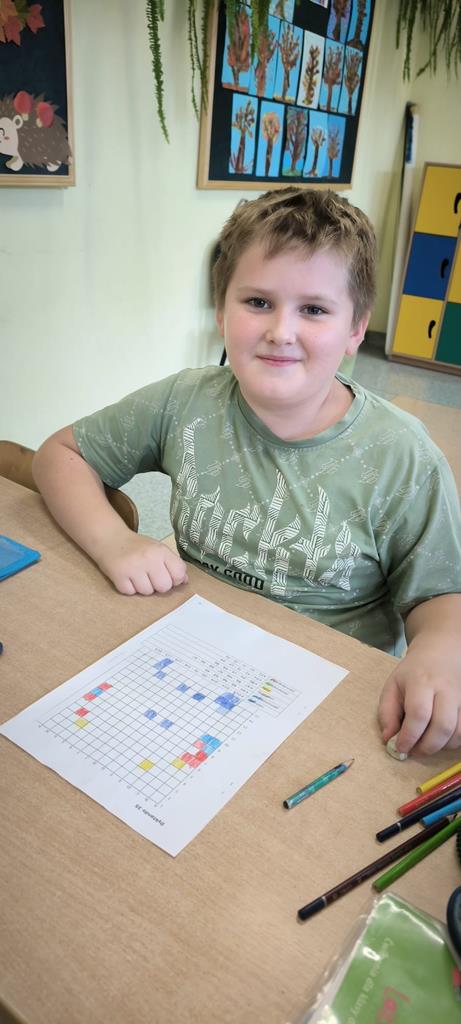 Drugoklasiści tworzyli kolorowe obrazki, wypełniając odpowiednie pola zgodnie z przypisanym kodem