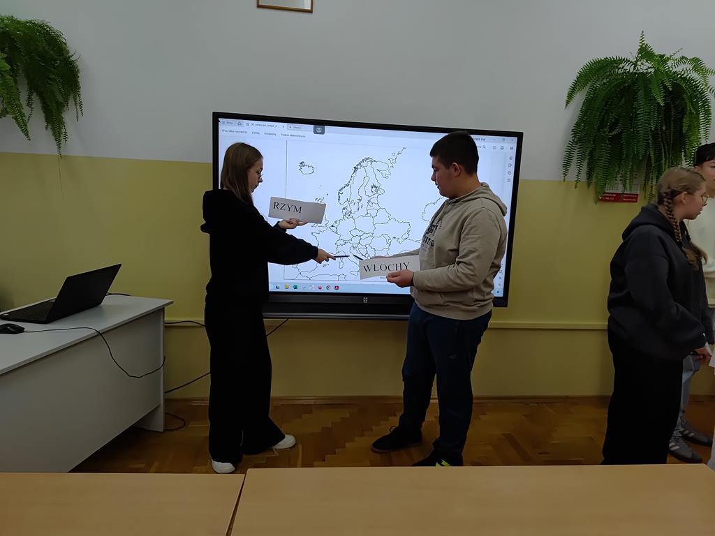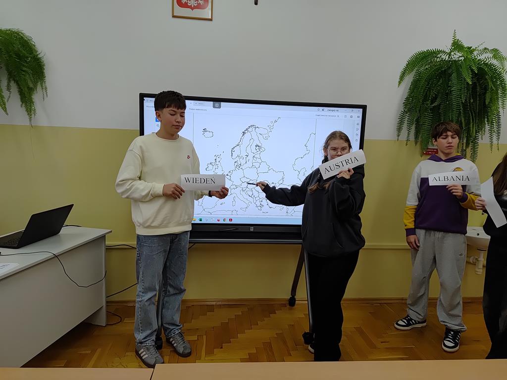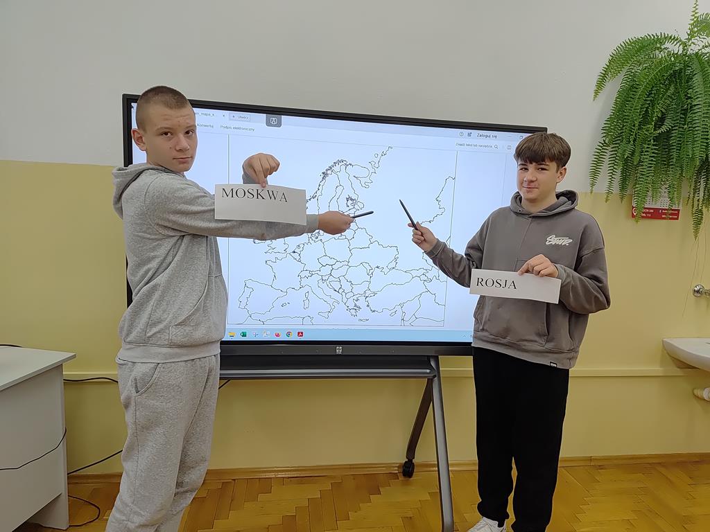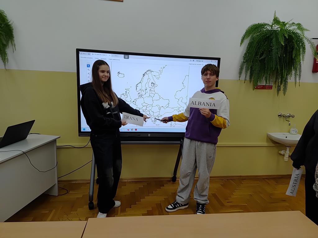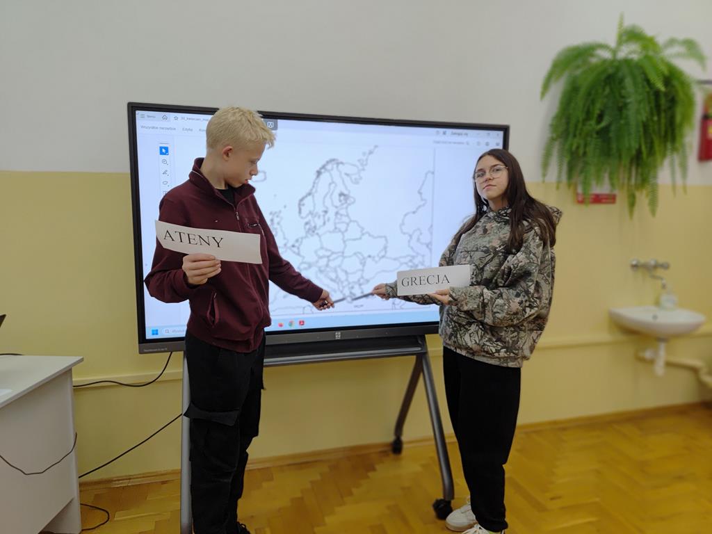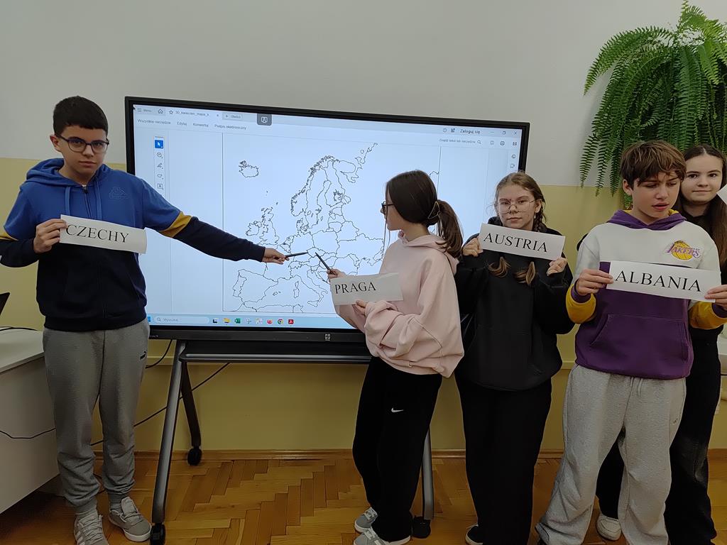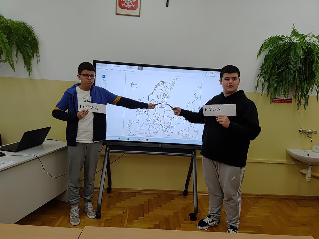 Kodowanie mapy Europy na historii polegało na odgadywaniu przez uczniów nazw wskazanych krajów europejskich i ich stolic