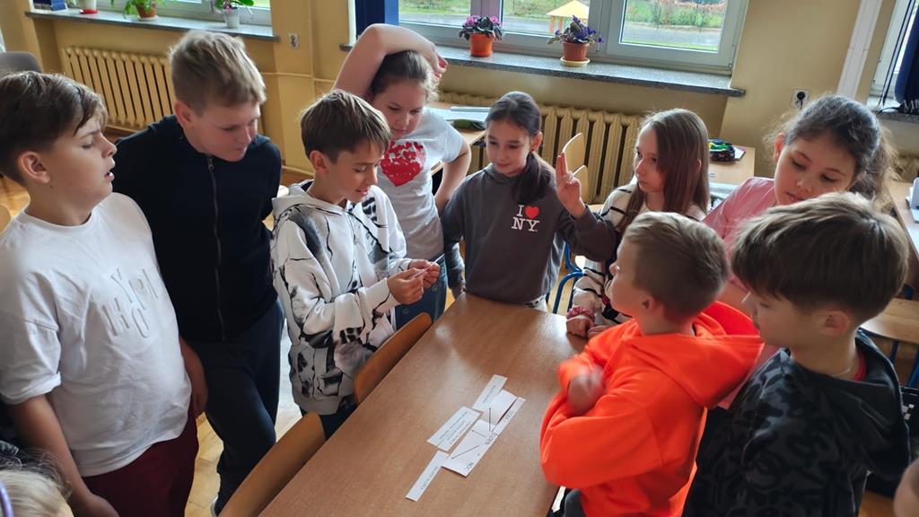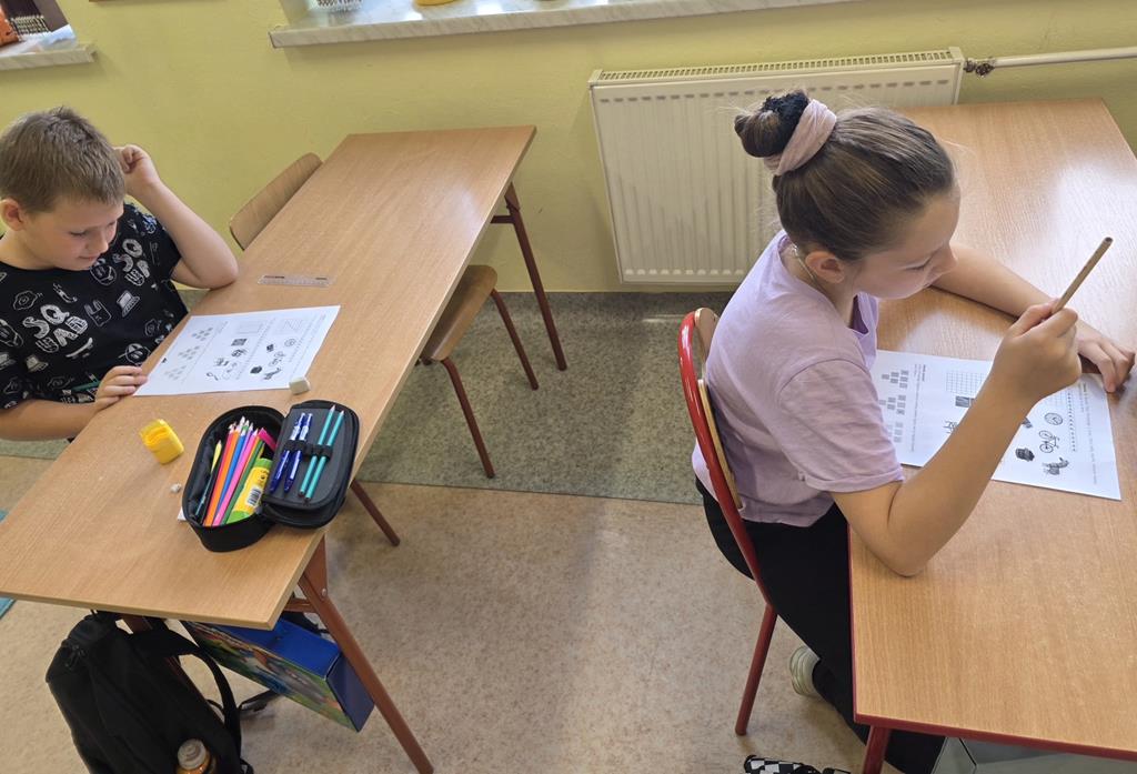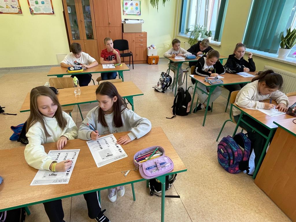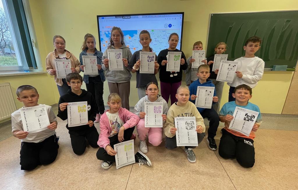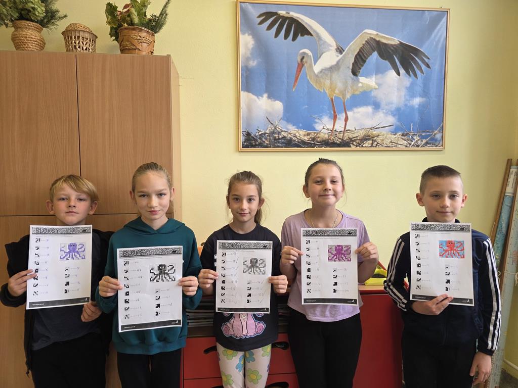 Uczniowie klasy czwartej uczestniczyli w nietypowej lekcji powtórzeniowej z matematyki, podczas której utrwalali wiadomości z działu: „Liczby i działania” rozkodowując dobrymi wynikami obrazek ukryty na planszy. Na lekcji przyrody natomiast rozszyfrowywali warunki pogodowe z zakodowanych raportów, a następnie sami przedstawiali w formie kodu wybrane przez siebie zjawiska atmosferyczne